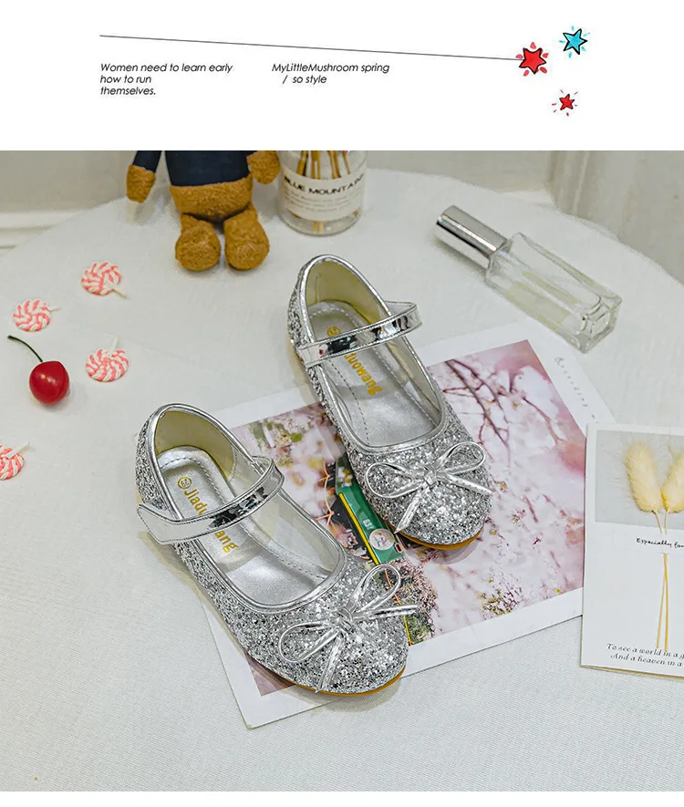 Кожаные свадебные туфли для девочек; Детские сандалии принцессы с блестками; Enfants; Вечерние туфли на высоком каблуке для девочек