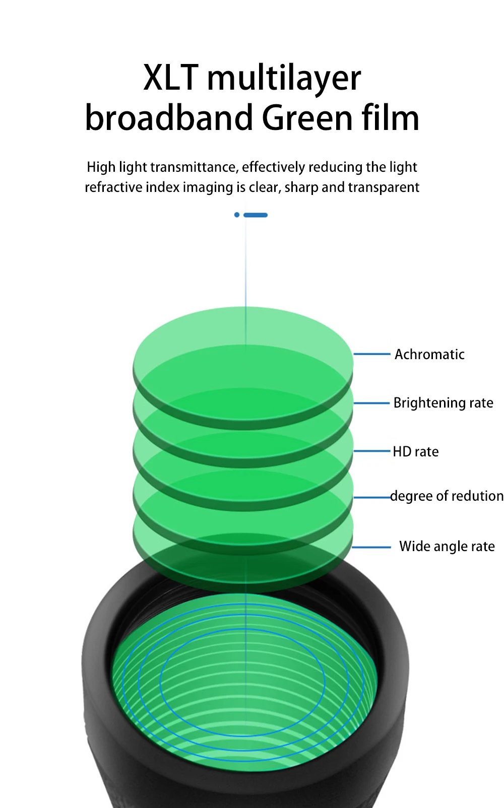Большой окуляр 1,28 мм 2,50 мм большой объектив 3. Оптическое покрытие: многослойное покрытие FMC 4. Увеличение: 50х