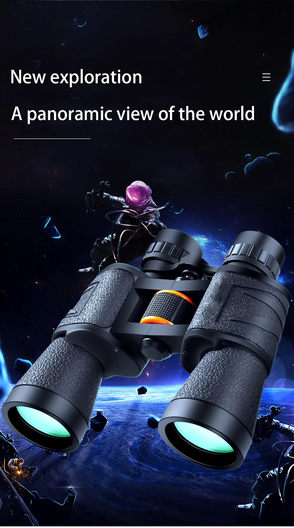 1,50 мм, супер большой объектив, стабильный обзор (трудно встряхнуть) Окуляр 2,28 мм (в условиях низсветильник может приносить более четкие изображения.) 4. Которые можно использовать в концерте любимых звезд или игре 5. Вы также можете четко наблюдать за птицами 6.HD предотвращает головокружение за счет стекла BAK 4