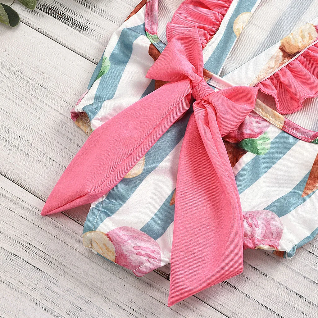 Детское бикини в полоску с оборками для маленьких девочек, пляжный летний купальник, купальники