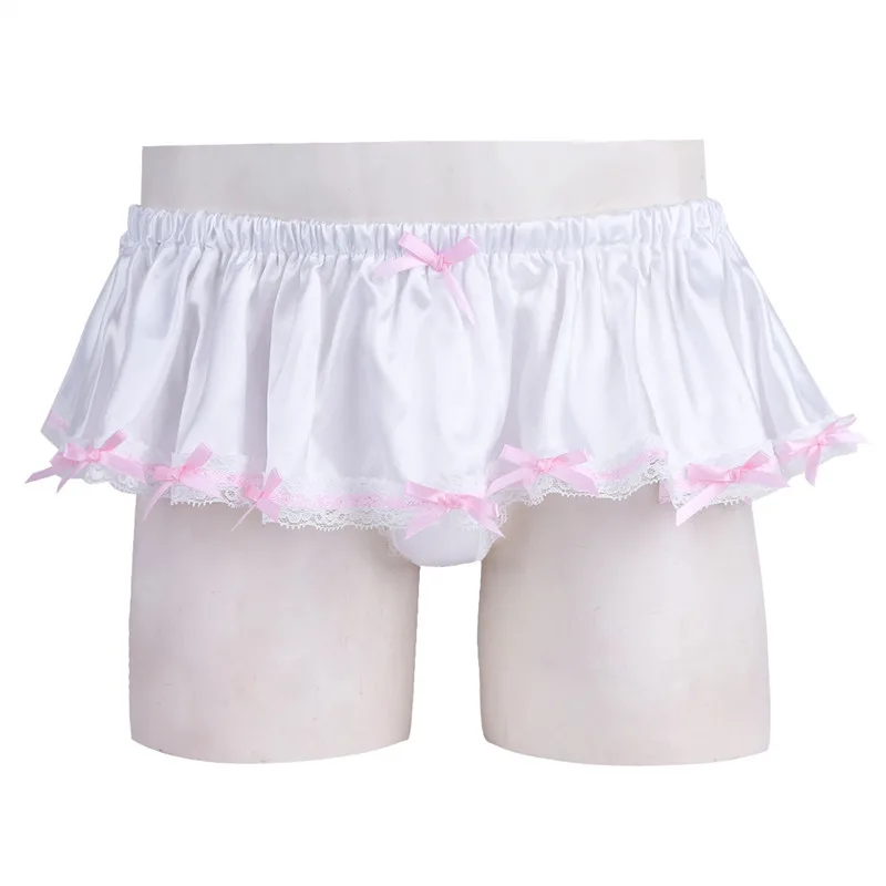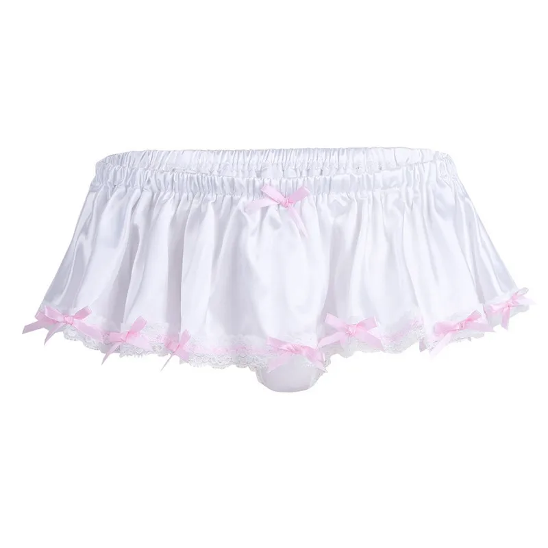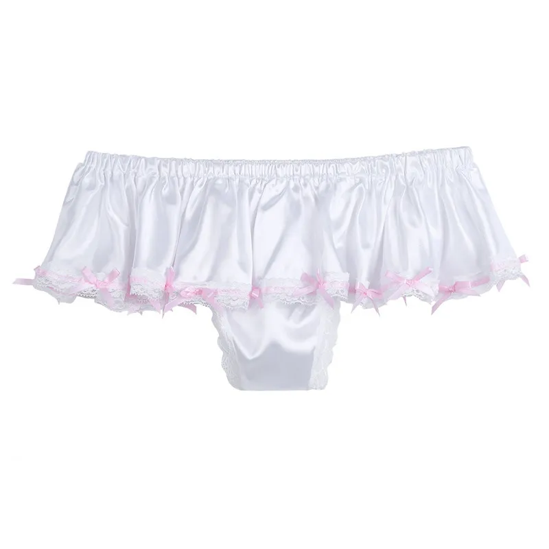 Эластичный пояс и низкая посадка, кружевная отделка и милые бантики для украшения.