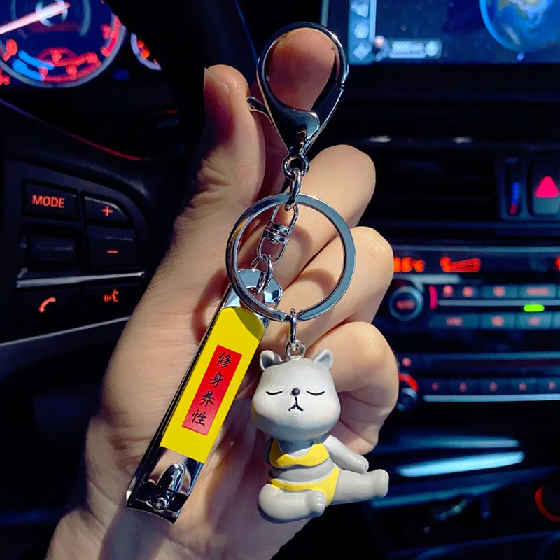 Милый брелок для йоги и кошек, Женский креативный мультипликационный Кот, многофункциональная машинка для стрижки ногтей, брелок, Портативная сумка, автомобильный подвесной брелок, подарок