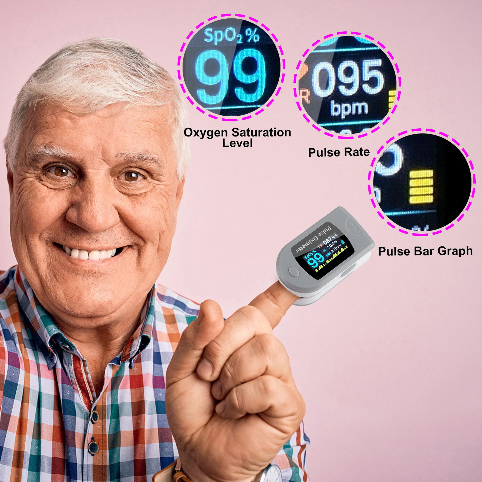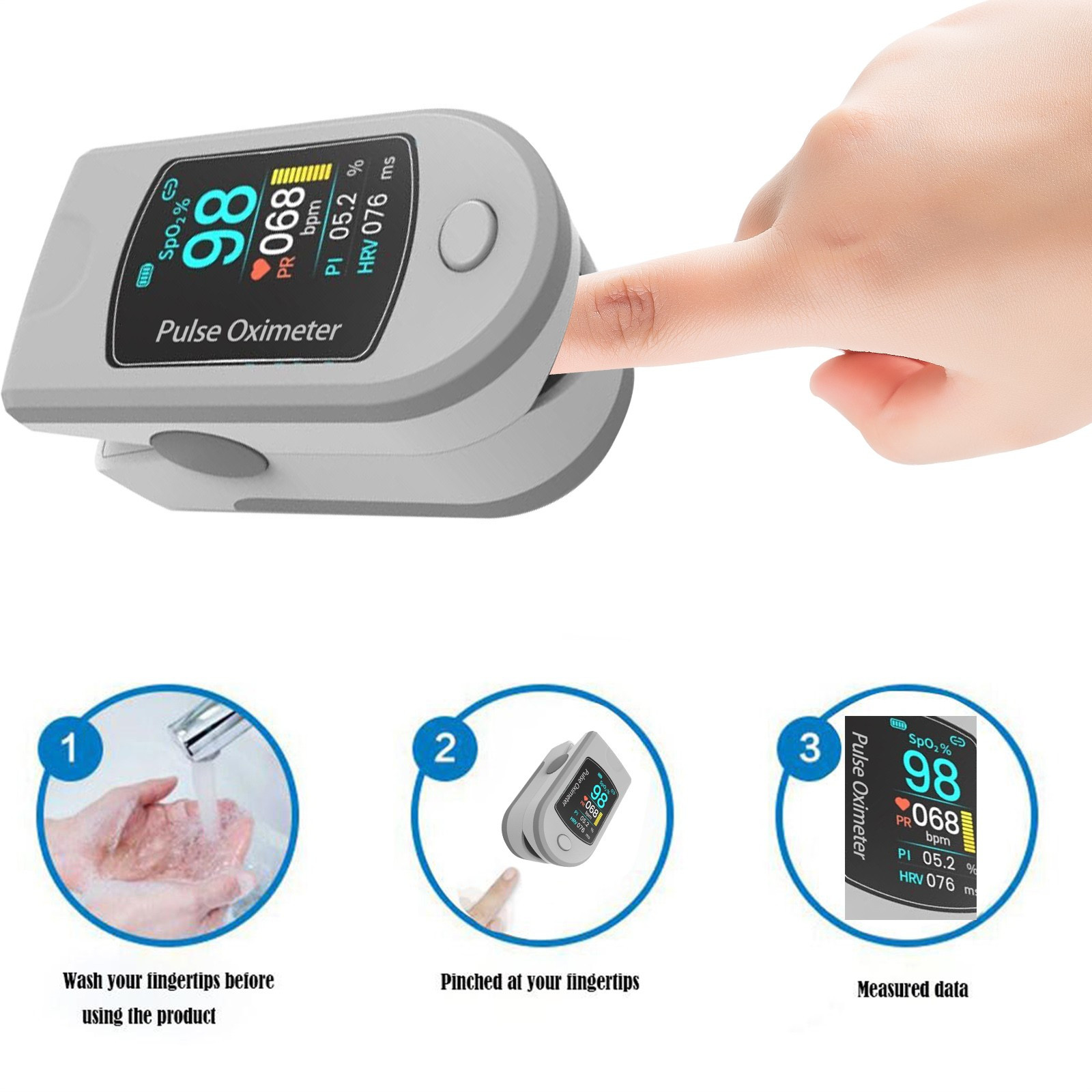 Кислород в крови из пальца Насыщенность монитор с светодиодный экран | Цифровые показания для SpO2/Частота пульса
