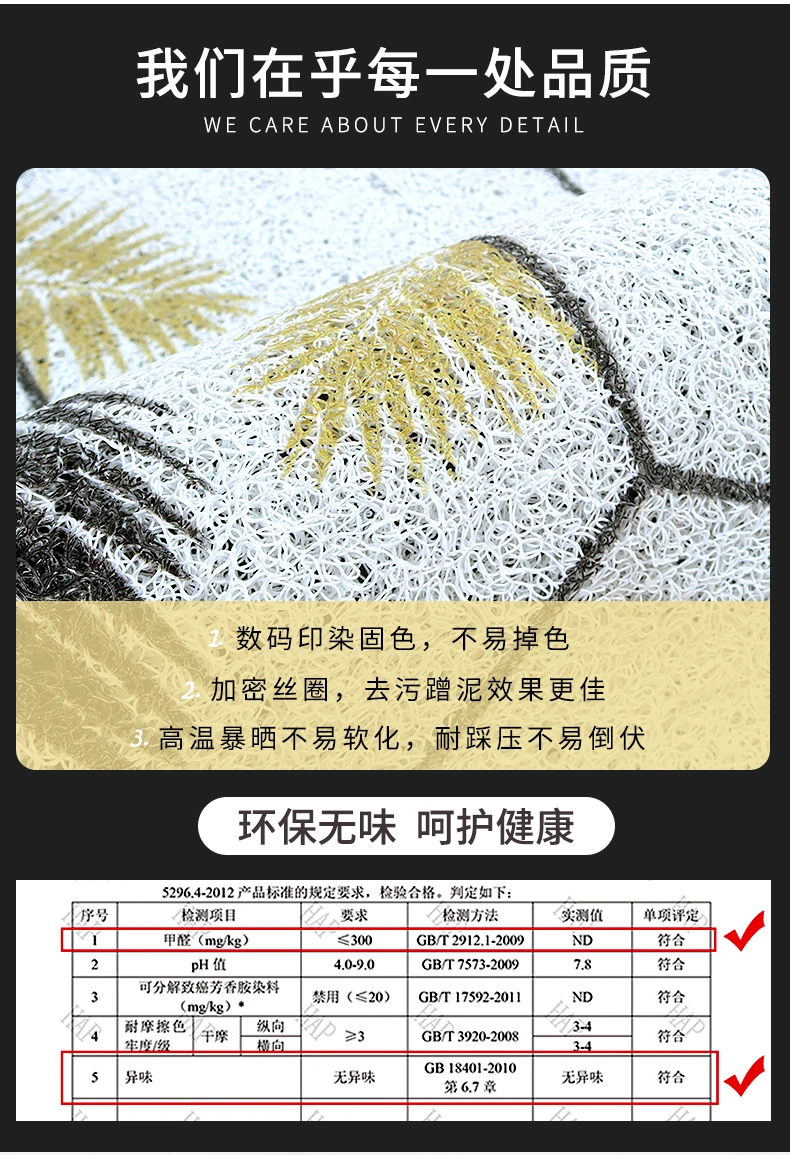 > Может быть настроен в соответствии с размером входа, пожалуйста, свяжитесь с нами, если вам нужно настроить. > Он изготовлен из экологически чистого материала и безвреден для людей. > Подошва изготовлена из противоскользящего материала, чтобы предотвратить скольжение коврика и защитить вашу безопасность, верхний материал может поглощать влагу от обуви, чтобы сделать полы чистыми и сухими, также удалите пыль, грязь, снег и т. д. > Можно свободно разрезать любые формы, которые вы хотите, и подходит для внутреннего и наружного входа, прихожей, гостиной, спальни, ванной комнаты и т. д. > Толщина составляет около 8 мм, он может полностью лежать на полу и не будет мешать открыванию и закрытию двери. > Когда коврик заполнен частицами грязи, вы можете просто очистить его с помощью пылесоса, или вы можете использовать садовый шланг на краску, затем дайте коврику полностью высохнуть на воздухе перед следующим использованием.