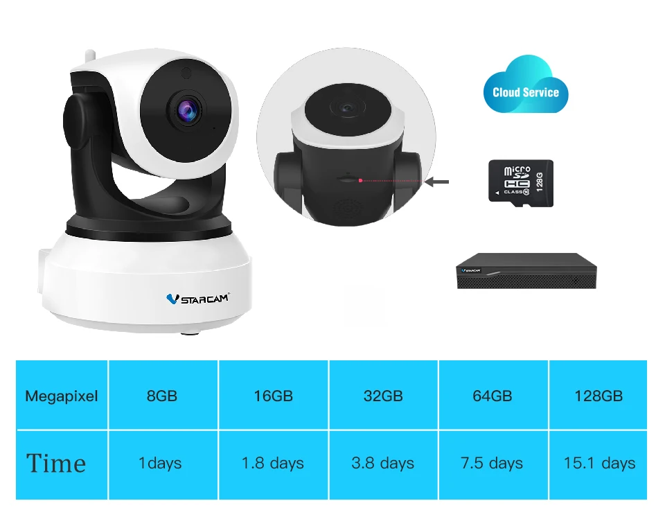 √ Поддержка 8-128 Гб sd карты памяти, облако и NVR хранения.