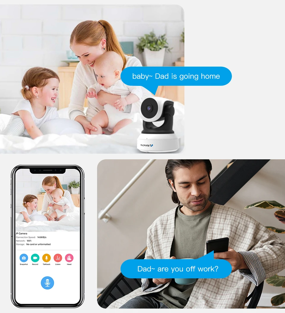 √ Камера может Интеллектуальное распознавание плачущего звука ребенка. Когда камера обнаруживает плачущее Звучание вашего ребенка, она сразу же тревожит вас сообщениями Eye4 APP, электронной почтой и FTP.
