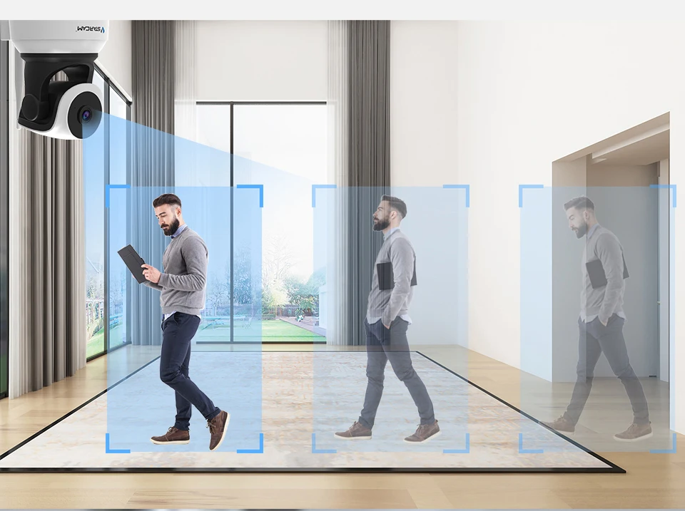 √ И камера будет автоматически панорамировать/наклонять, чтобы следить за положением человека, чтобы автоматически отслеживать человека в режиме реального времени.