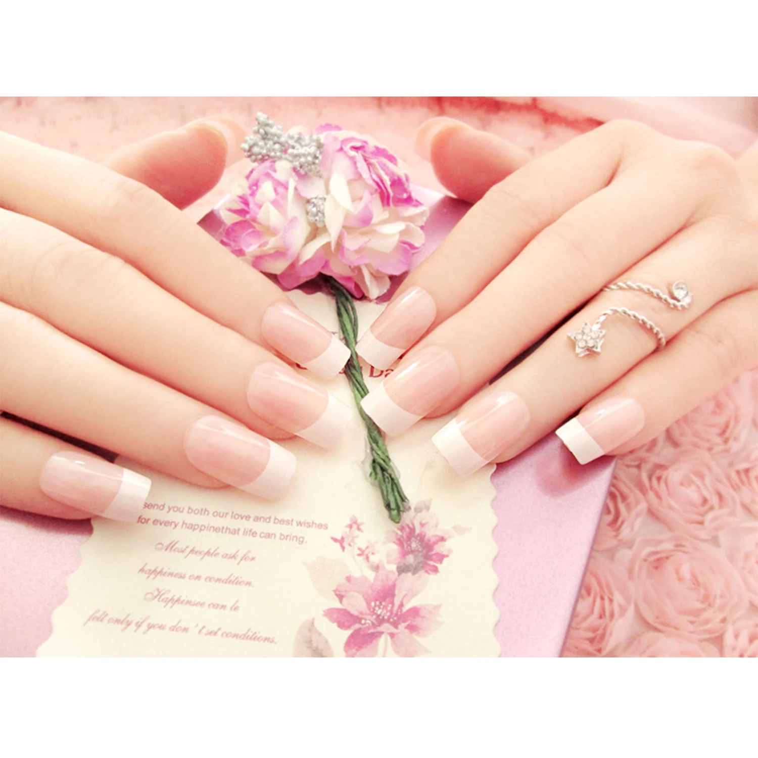 100% новый товар высокого качества. Материал изделия: АБС-пластик Тип товара: французский Простота в использовании Подходит для использования с гелем, акрилом или стекловолокном. Посылка включает в себя: 24 шт./кор. накладные ногти + пресс клей