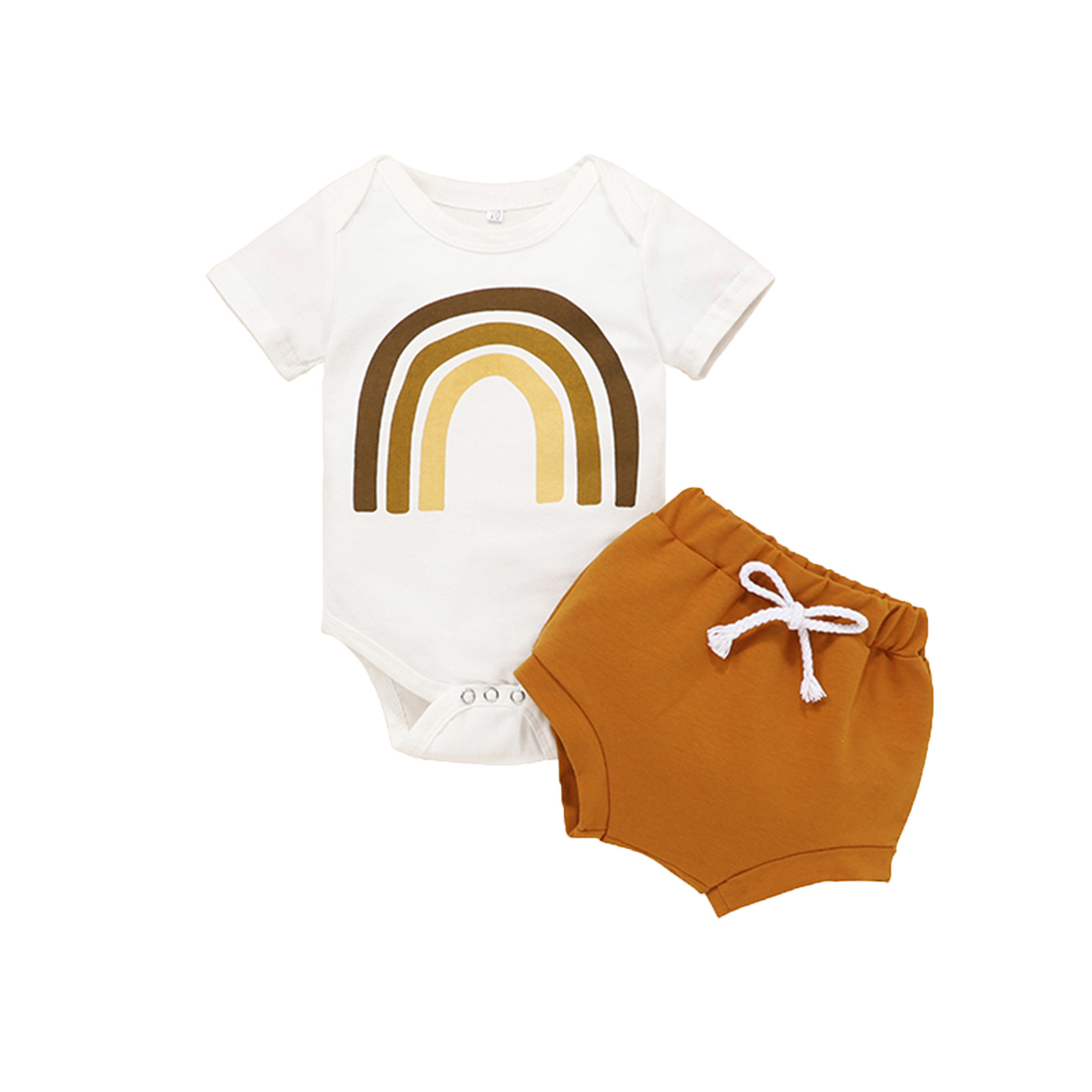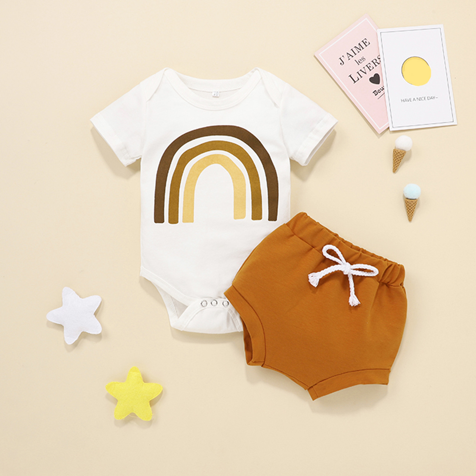 Комбинезон с короткими рукавами для новорожденных девочек, боди + однотонные шорты, комплект