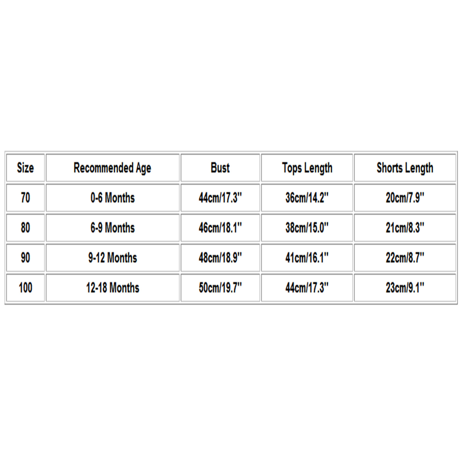 Размер Рекомендуемый возраст Бюст Длина топа Длина шорт 70 0-6 месяцев 44 см/17,3'' 36 см/14,2'' 20 см/7,9'' 80 6-9 месяцев 46 см/18,1'' 38 см/15,0'' 21 см/8,3'' 90 9-12 месяцев 48 см/18,9'' 41 см/16,1'' 22 см/8,7'' 100 12-18 месяцев 50 см/19,7'' 44 см/17,3'' 23 см/9,1''