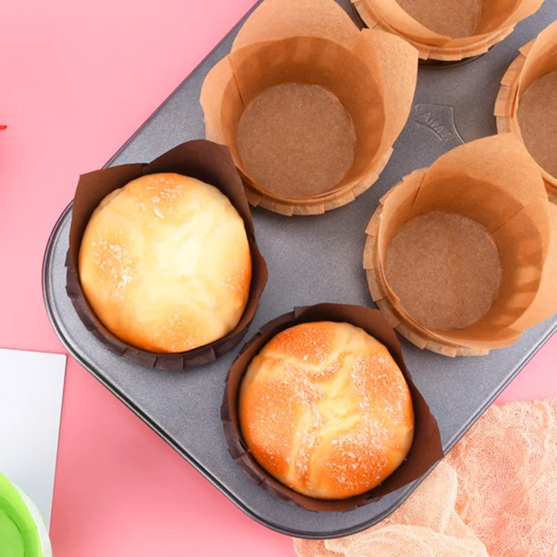 <Пищевой Материал: изготовлен из высококачественной жиронепроницаемой бумаги, антипригарной, натуральной пищевой бумаги для кексов помогает удерживать влагу и способствует даже выпечке для кексов или маффинов.