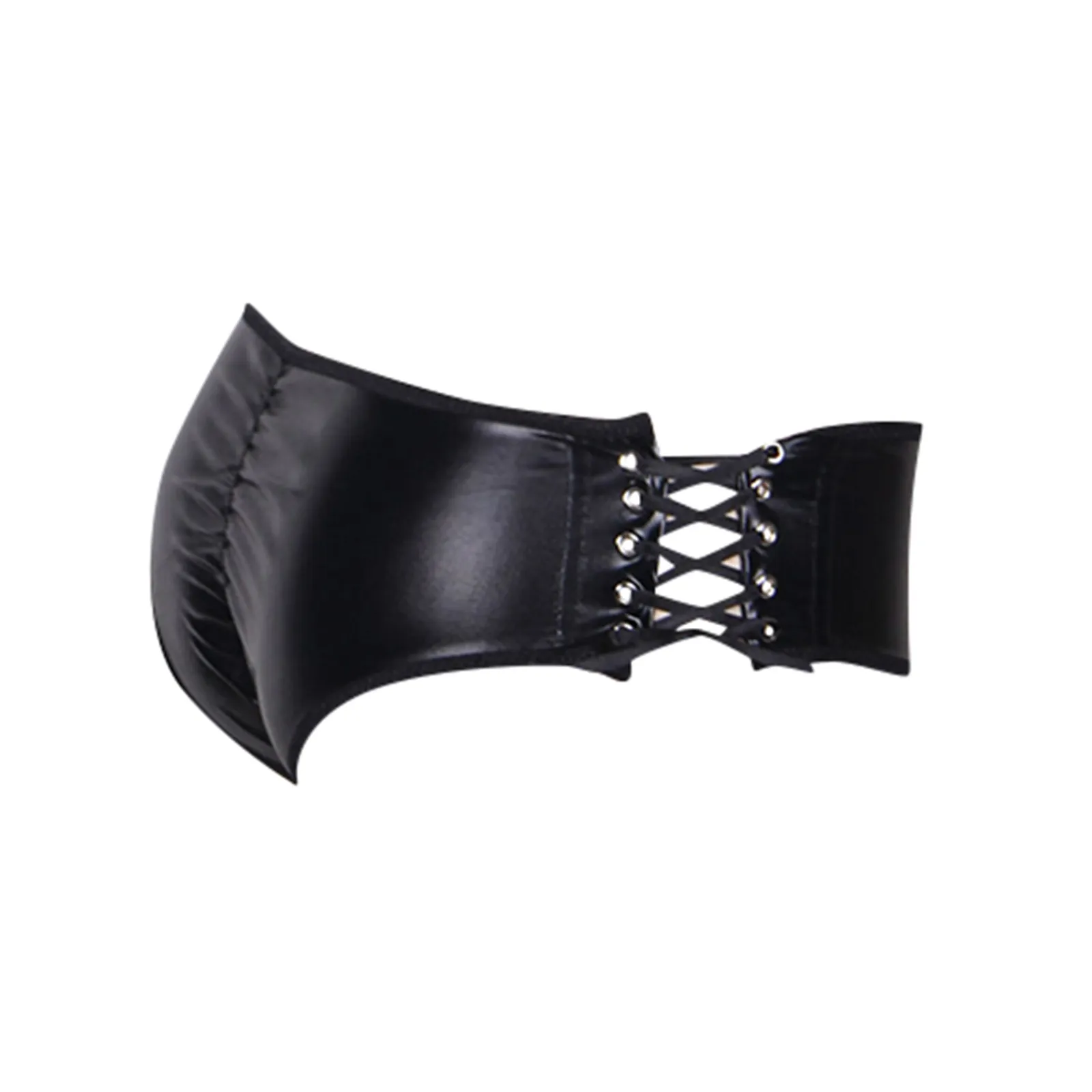 Женские сексуальные модные забавные супер короткие кожаные брюки из искусственной кожи на шнуровке