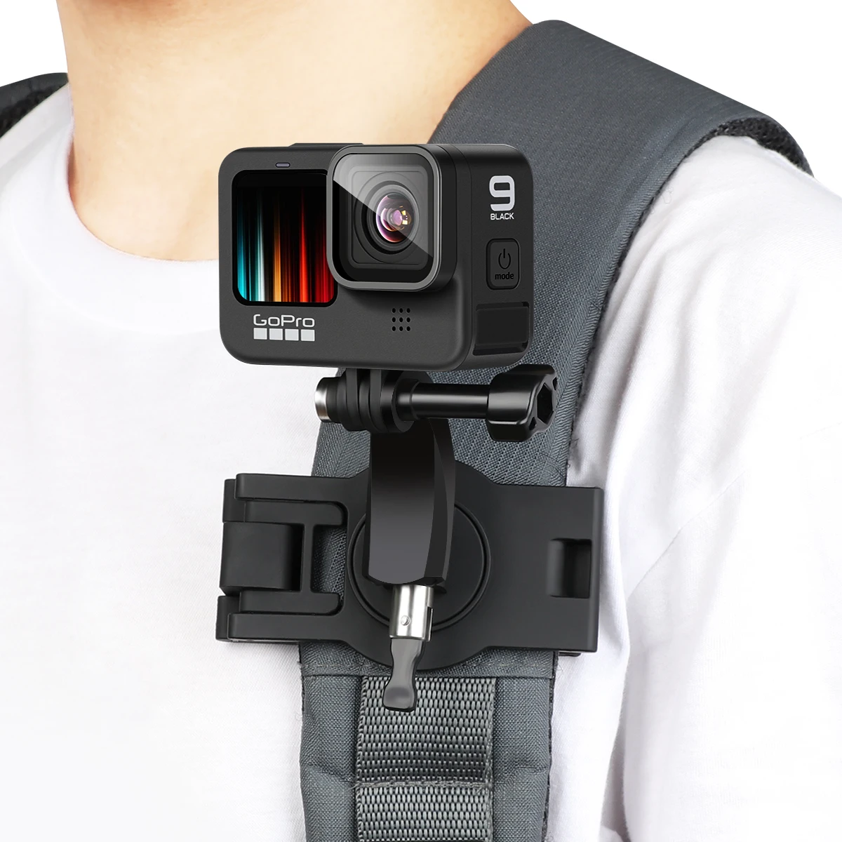 360 Degree Rotary backpack clip accessories for gopro hero 9 8 7 6 5 4 3 insta 360 one r Sjcam Eken Shoulder Belt phone fixed
