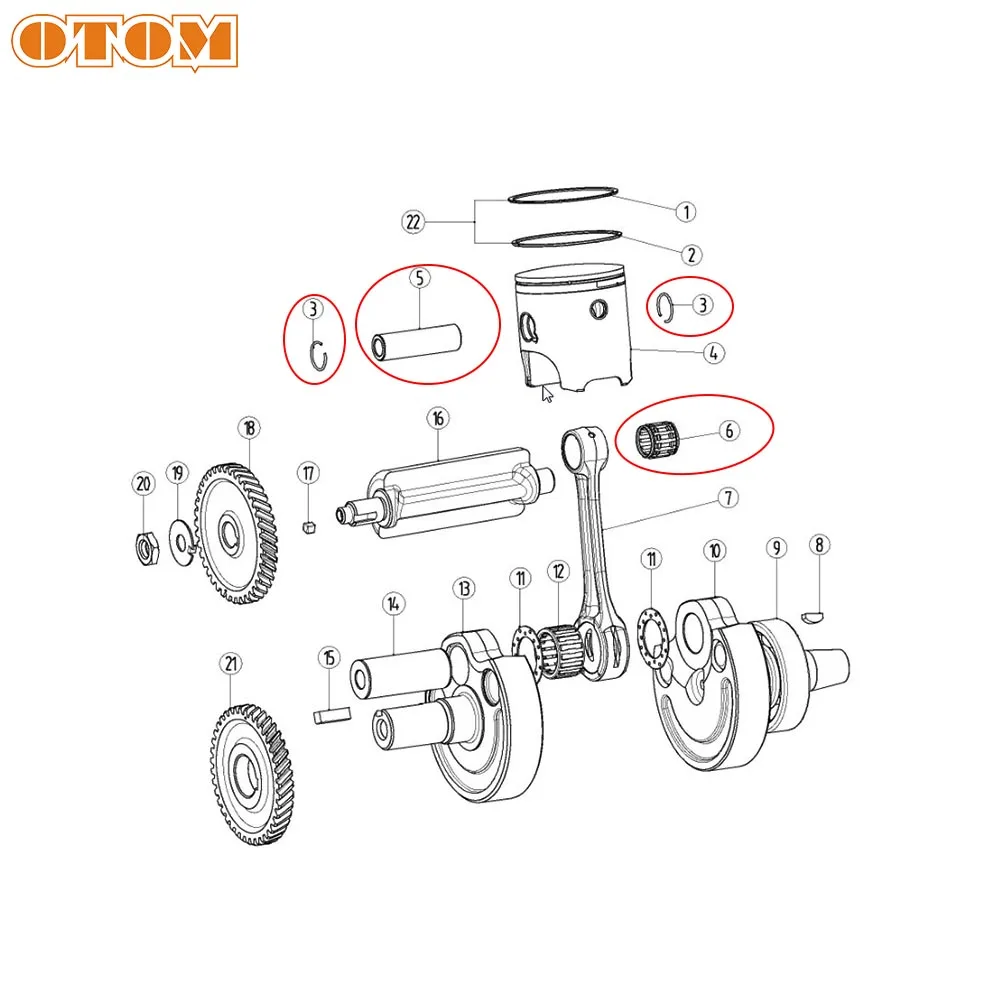 OTOM мотоцикла шатун коленвала поршневого пальца W/уплотнительное кольцо для YAMAHA DT230 MT250 2 с четырехтактным двигателем запчасти двигателя dt 250cc