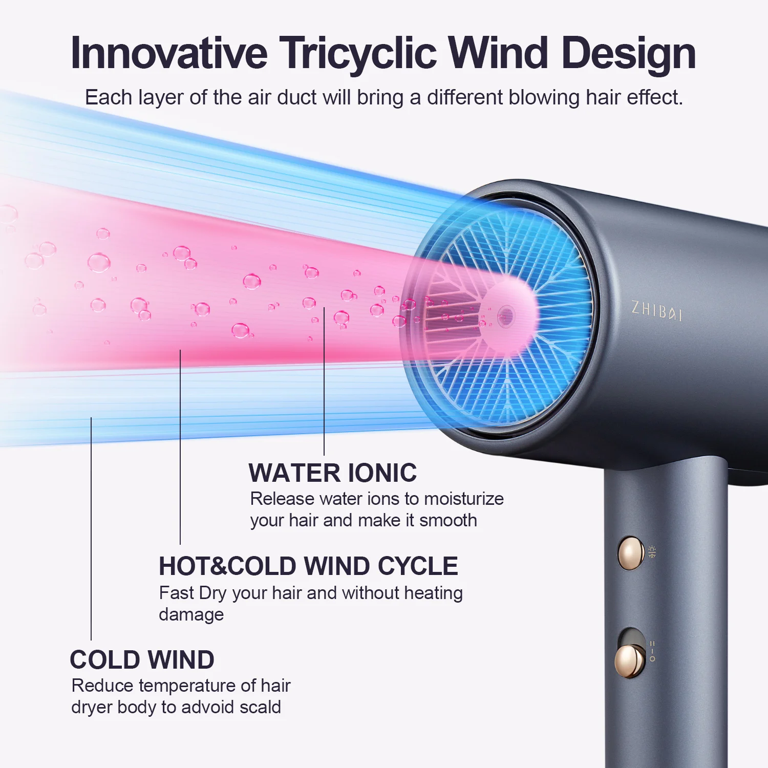Параметры продукта:Название: ZHIBAI водный ионный фен для волос【Улучшенный водный ионный патент Techonology】
