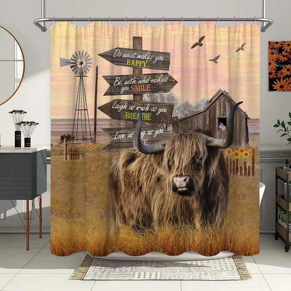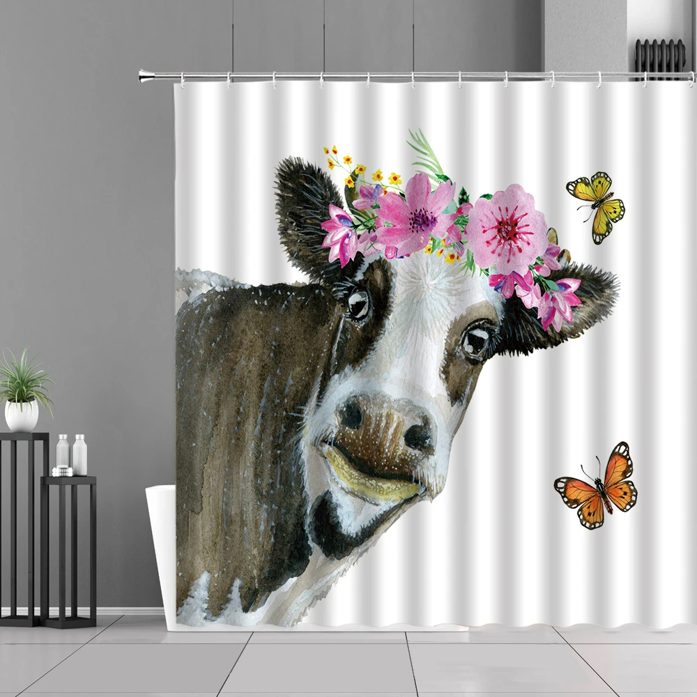 Holstein Cows Flower Butterfly Print Shower Curtains Funny Animals Cattle Bathroom Curtain Waterproof Home Decor Cloth Screen