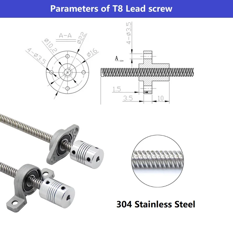 2pcs10 0 мм/150 мм/200 мм/250 мм/300 мм/330 мм/350 мм/400 мм/500 мм винт из нержавеющей стали T8lead(На ваш выбор)