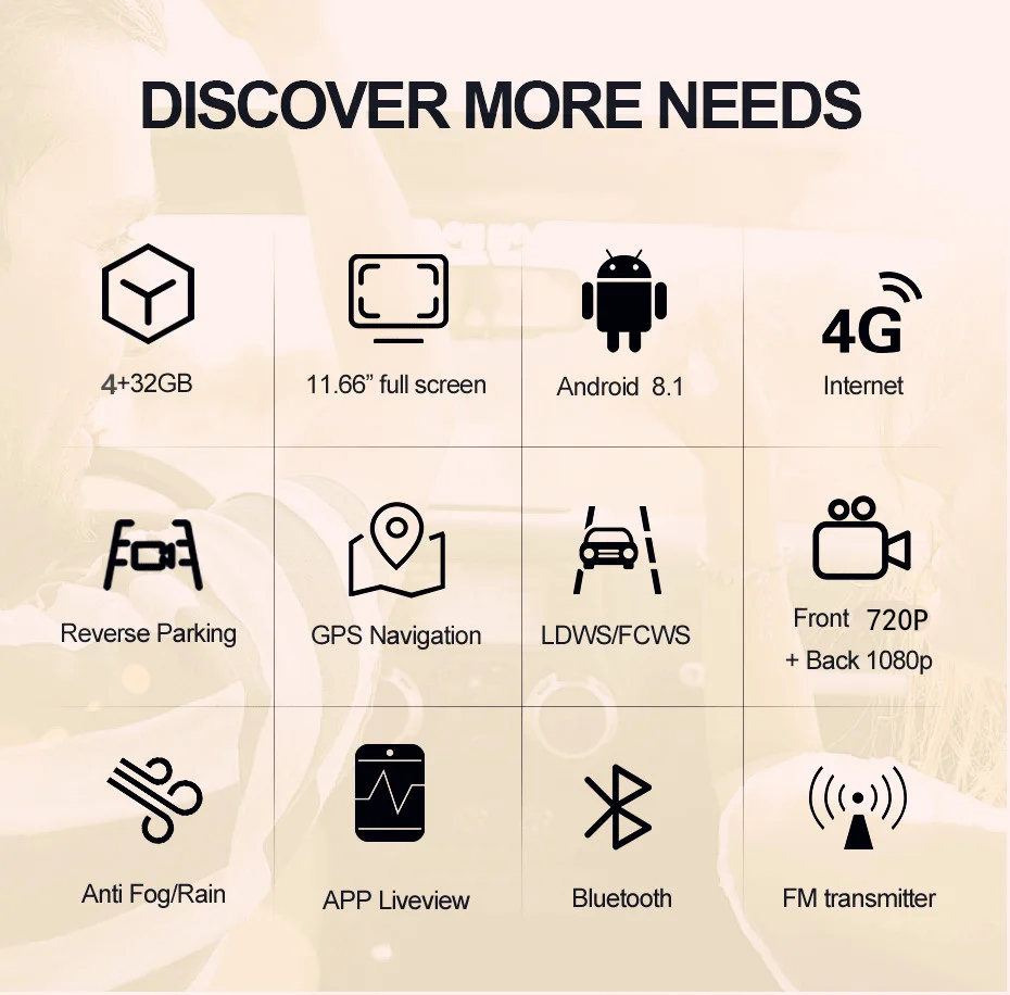 4.Фронтальная камера FHD 720p задняя камера FHD 1080P, Четкая запись видео и помощь в парковке.