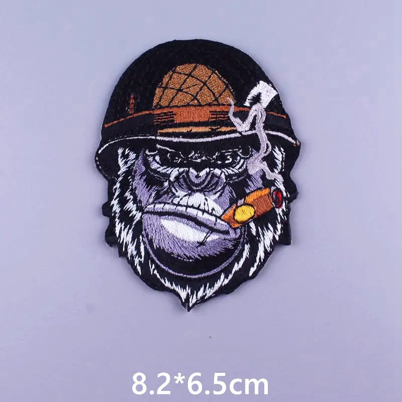 Нашивка в полоску с аппликацией в виде черепа, одежда в стиле панк, сделай сам, вышитые нашивки в виде медведя, Льва, гориллы, наклейки для одежды, значки с животными