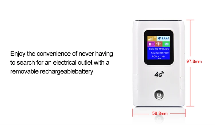 Продукт в основном предназначен для SOHO, пользователей транспортных средств, деловых путешественников и путешественников на открытом воздухе, поддержка 10 пользователей в то же время, низкое энергопотребление и длительный срок службы батареи; Стильный, компактный и портативный позволит вам наслаждаться высокоскоростным доступом в Интернет в любое время и в любом месте.