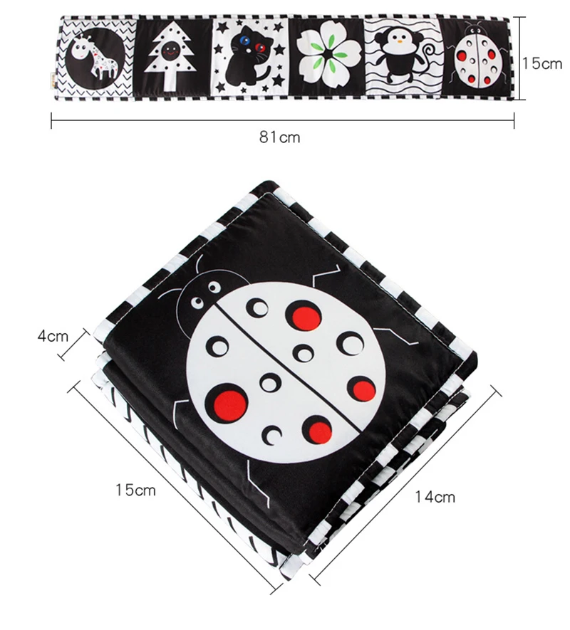 Детская книга, игрушки для малыш новорожденный младенец книжки из мягкой ткани, Детская Тихая книга для раннего развития, черная белая книга для визуальной стимуляции