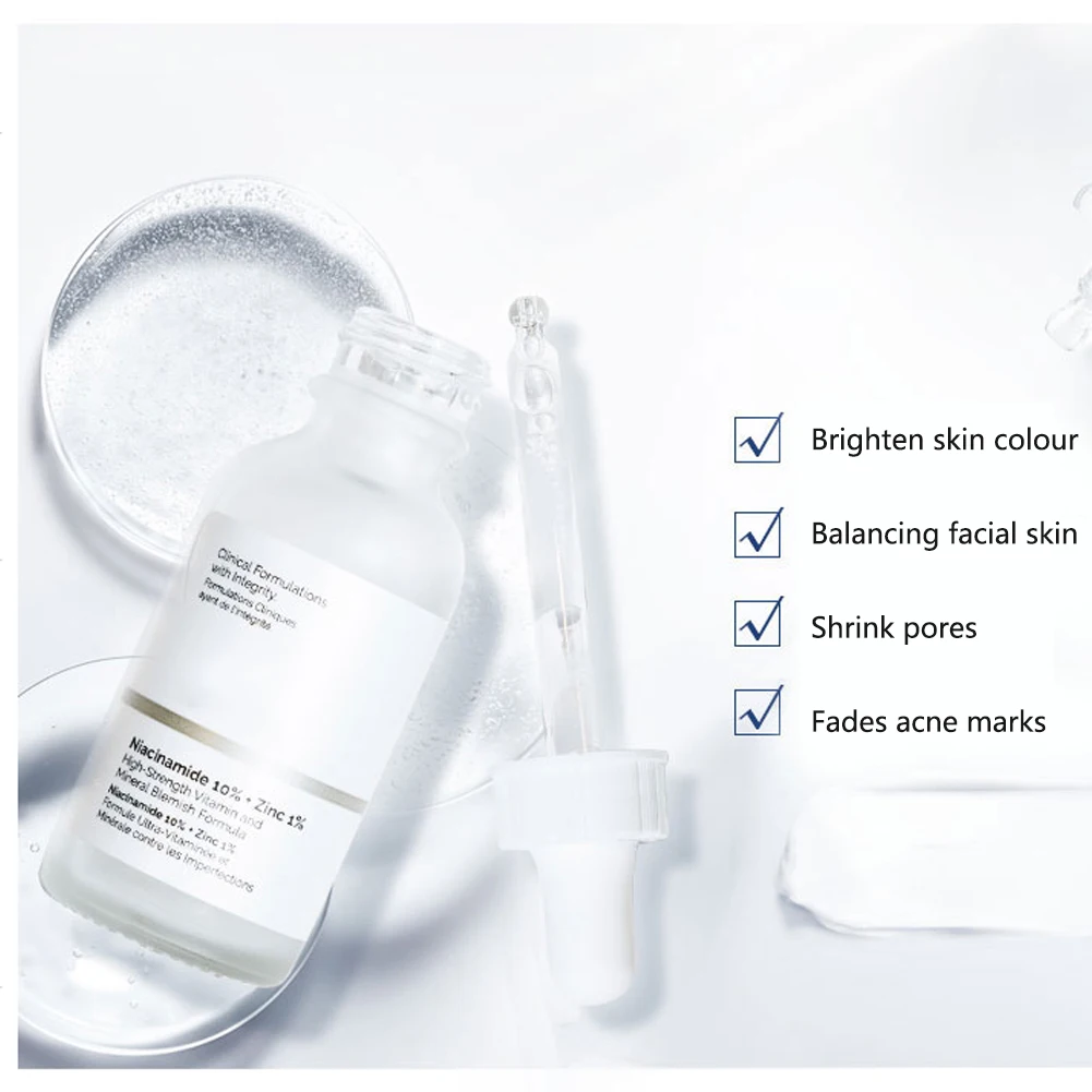 Ниацинамид 30 мл, 10% + Цинк 1%, увлажняющая отбеливающая Сыворотка для уменьшения недостатков кожи, контроль жирности лица, Прямая поставка