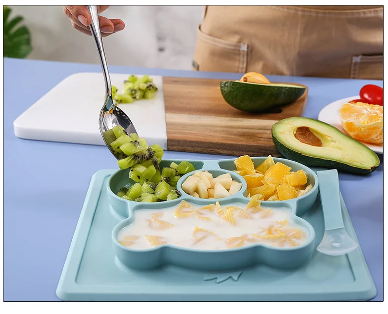 Тип 1: Силиконовая ложка для детской чаши Тип 2: Силиконовая чаша для малышей Тип 3: детская посуда Цвет: 4 стиля Материал: силикон Применение: Силиконовая ложка для детской посуды Стиль: сон