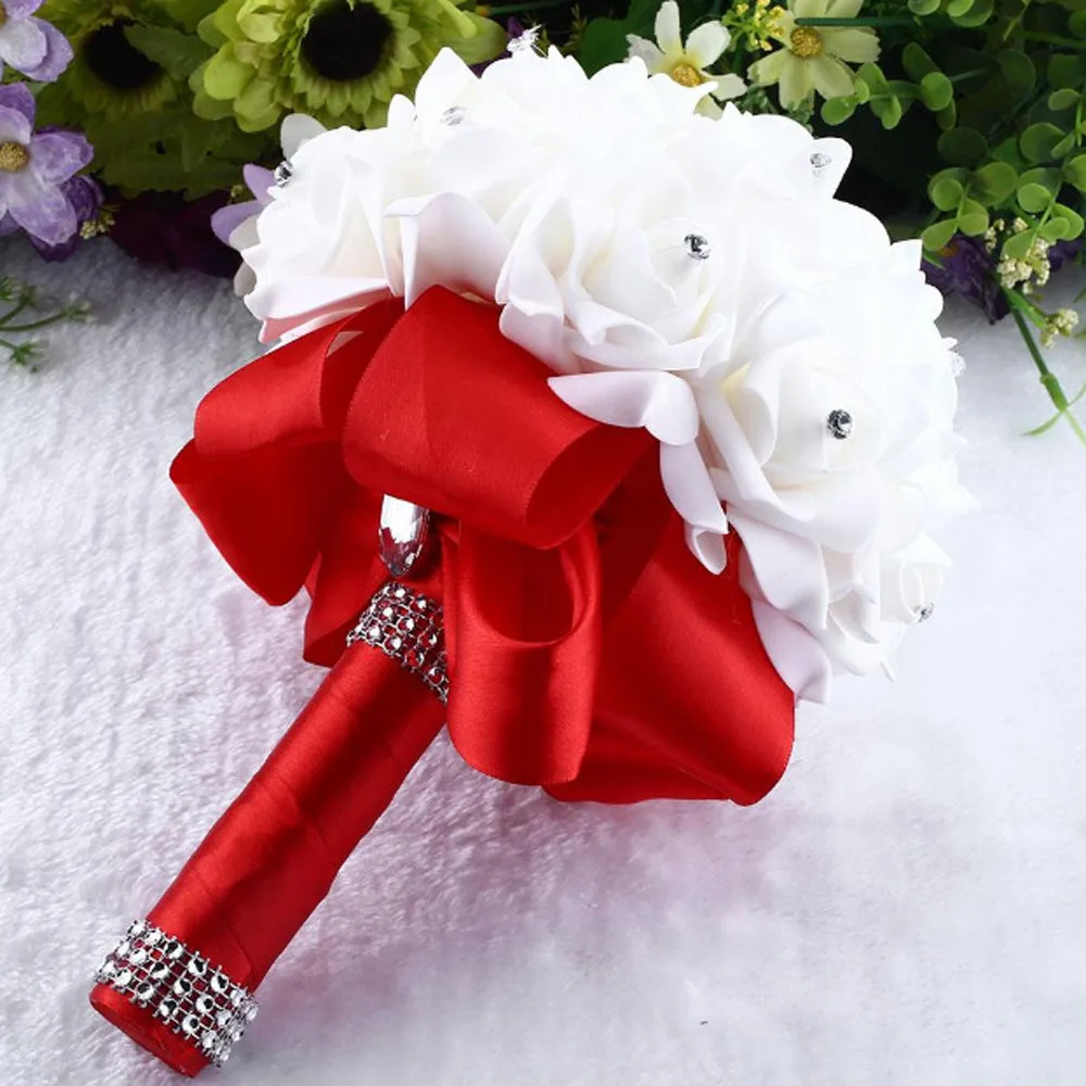 Розы с кристаллами жемчужные подружки невесты Свадебный букет свадебные искусственные шелковые цветы
