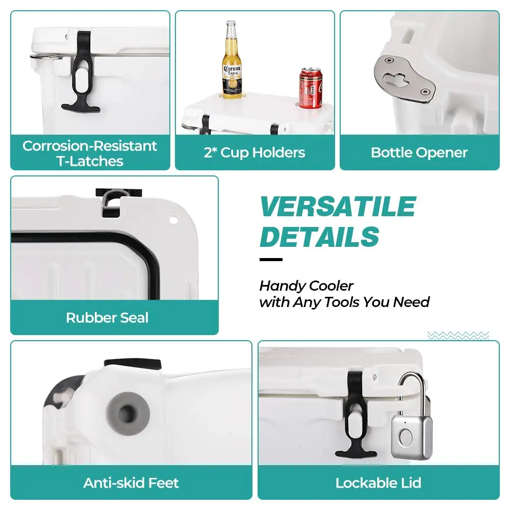 [Материал] Инкубатор UTV использует экологически чистые материалы пищевого качества и имеет прочную бесшовную конструкцию ротационной конструкции, нетоксичную, без запаха, анти-ультрафиолетовую и гарантирует безопасность использования. [Изоляция] Он имеет 360 градусов резиновая прокладка и улучшенной коррозионно-стойкие для пальцев, искусственные бриллианты, Т-образный фиксатор, который может сформировать герметичное уплотнение для того, чтобы сохранить внутренней системы кондиционирования воздуха, И имеет 2 дня льда емкость удерживания. [Портативный] Морозильная камера 11 Quart может содержать 16 банок. Портативный охладитель может быть идеально расположен на заднем полу автомобиля. Нескользящие ножки предотвращают любые беспокойства во время путешествия и не будут легко скользить. Кроме того, вес очень светильник, и его можно взять с собой под давлением. [Функция] Ручка из нержавеющей стали оснащена поролоновой прокладкой, что облегчает процесс транспортировки. Инкубатор оснащен Открывателем для бутылок, 2 держателями для чашек, запираемой крышкой и линейкой на крышке, которая может легко оценить вашу емкость, нескользящие ножки холодильника могут обеспечить более безопасное путешествие. [Прочный и прочный] Прочная бесшовная ротационная конструкция, поэтому независимо от того, куда вы идете, инкубатор может выдержать серьезные испытания. Прочный ротационный крутой охладитель с высокой устойчивостью к медведю может поддерживать до 700 фунтов. Может использоваться как для охлаждения, так и для сидения в день отдыха вашей семьи. [Встроенный открывалка для бутылок] Больше не беспокойтесь о том, что забыли свой открывалка для бутылок дома, когда вы уже на дороге. Т-образные защелки, которые создают сильное уплотнение, чтобы держать все внутри в холодном состоянии.