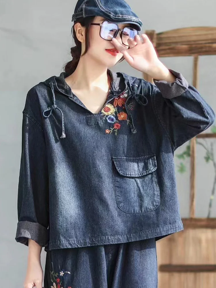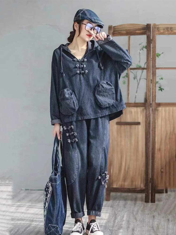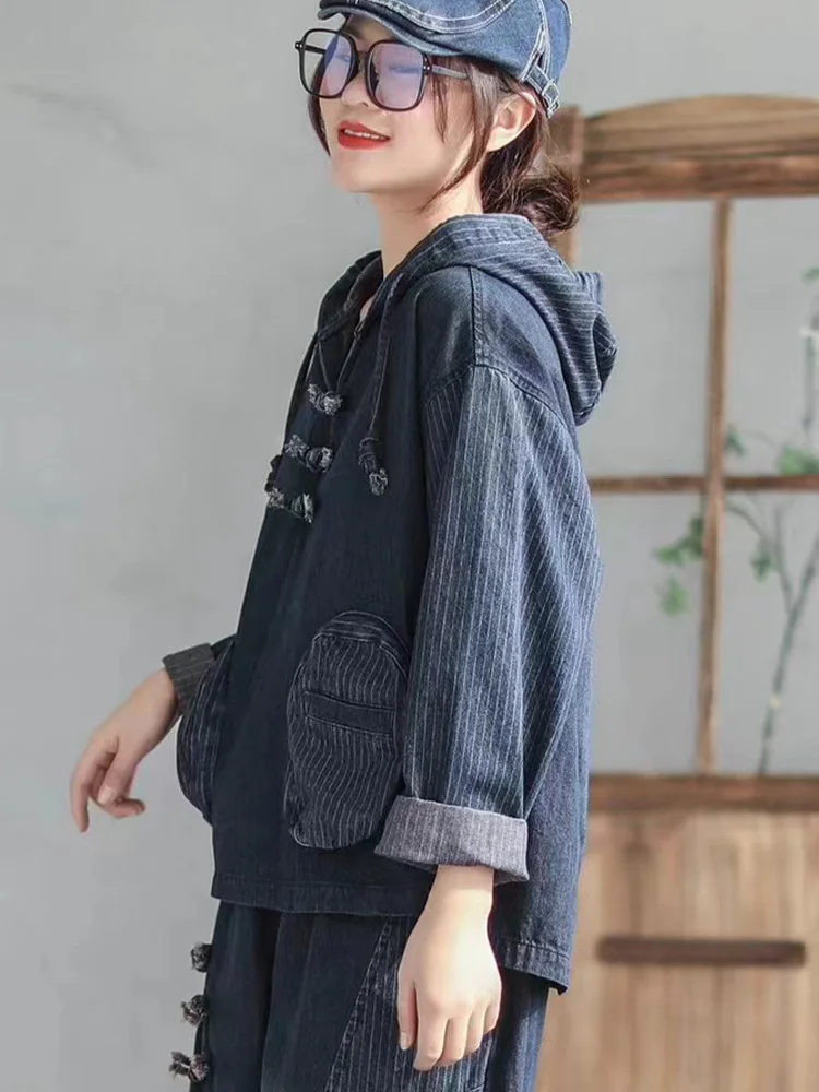 Модные Винтажные джинсовые блузки в китайском стиле