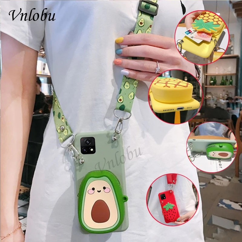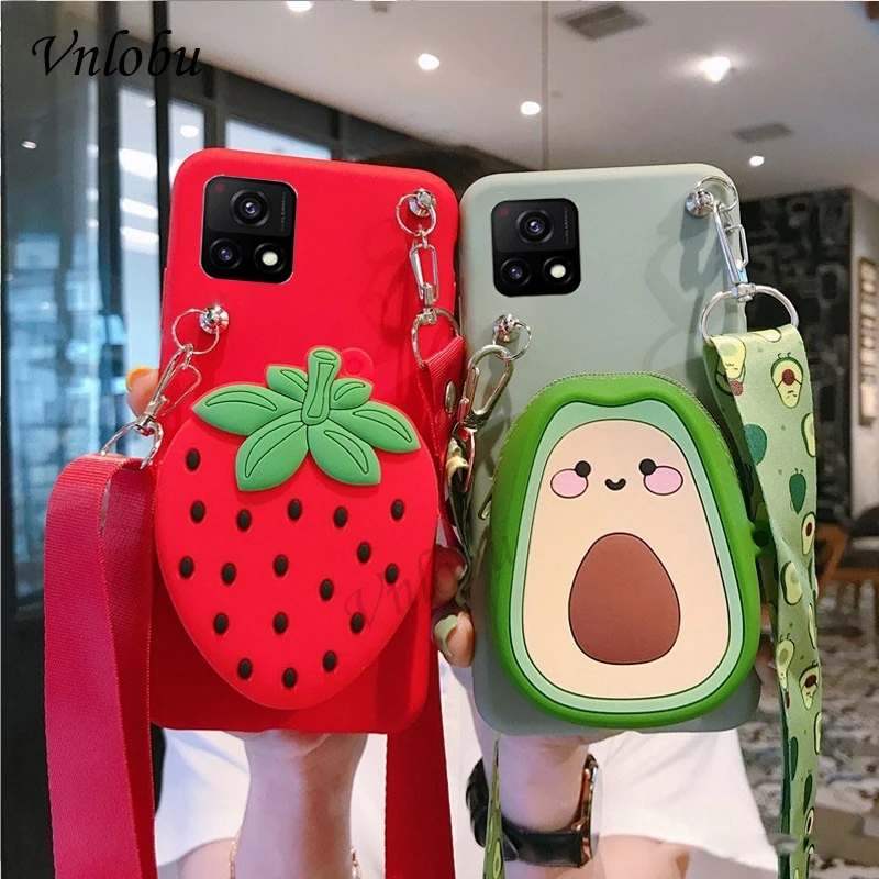 3D DIY Милая мультяшная монета с фруктами чехол для телефона для VIVO Y52S Y31S Y51 Y53S Y73S V20 Y30 V50 X50 Pro Plus, чехол-кошелек на молнии, шнурок
