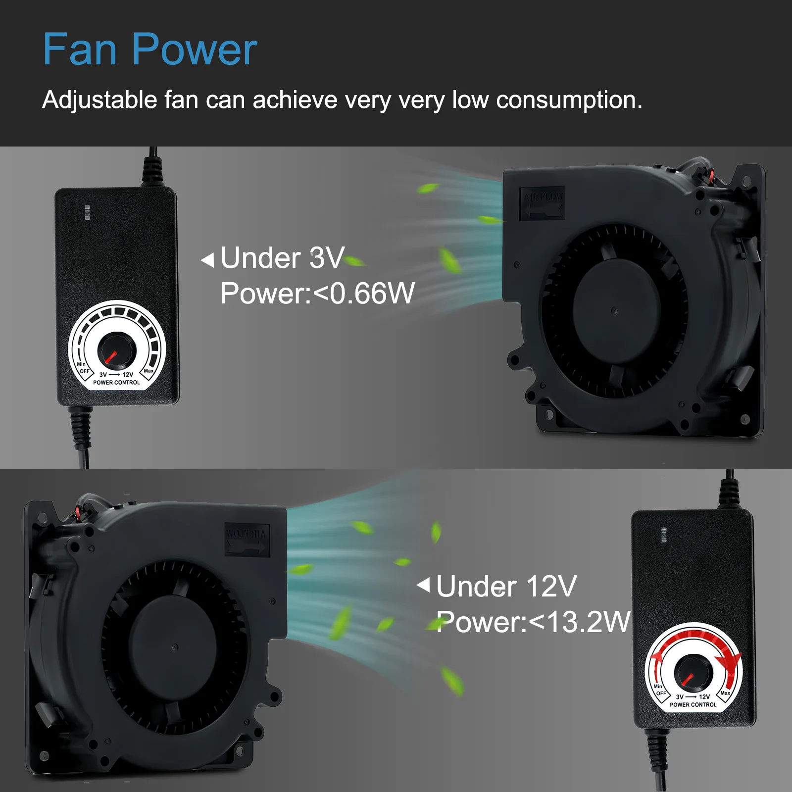 100% новый и высококачественный Регулятор мощности с регулируемым напряжением, постоянный ток 3-12 В, 2 А, просто Отрегулируйте требуемое напряжение через ручку переключателя. Универсальный адаптер переменного/постоянного тока, диапазон входного напряжения 100-240 В, подходит для разных стран и регионов спроса на электропитание. Усовершенствованный дизайн надежно защищает ваши устройства от перенапряжения, перегрузки по току, короткого замыкания и перегрева. Регулятор переменной скорости позволяет установить скорость вентилятора постоянного тока на оптимальный уровень шума и воздушного потока для различных приложений. Гнездовой разъем постоянного тока 5,5x2,1 мм 12 В 12 см 120 мм 120x120x32 мм 12032 бесщеточный центробежный вентилятор охлаждения Снижение температуры рабочей среды оборудования, продление срока службы оборудования