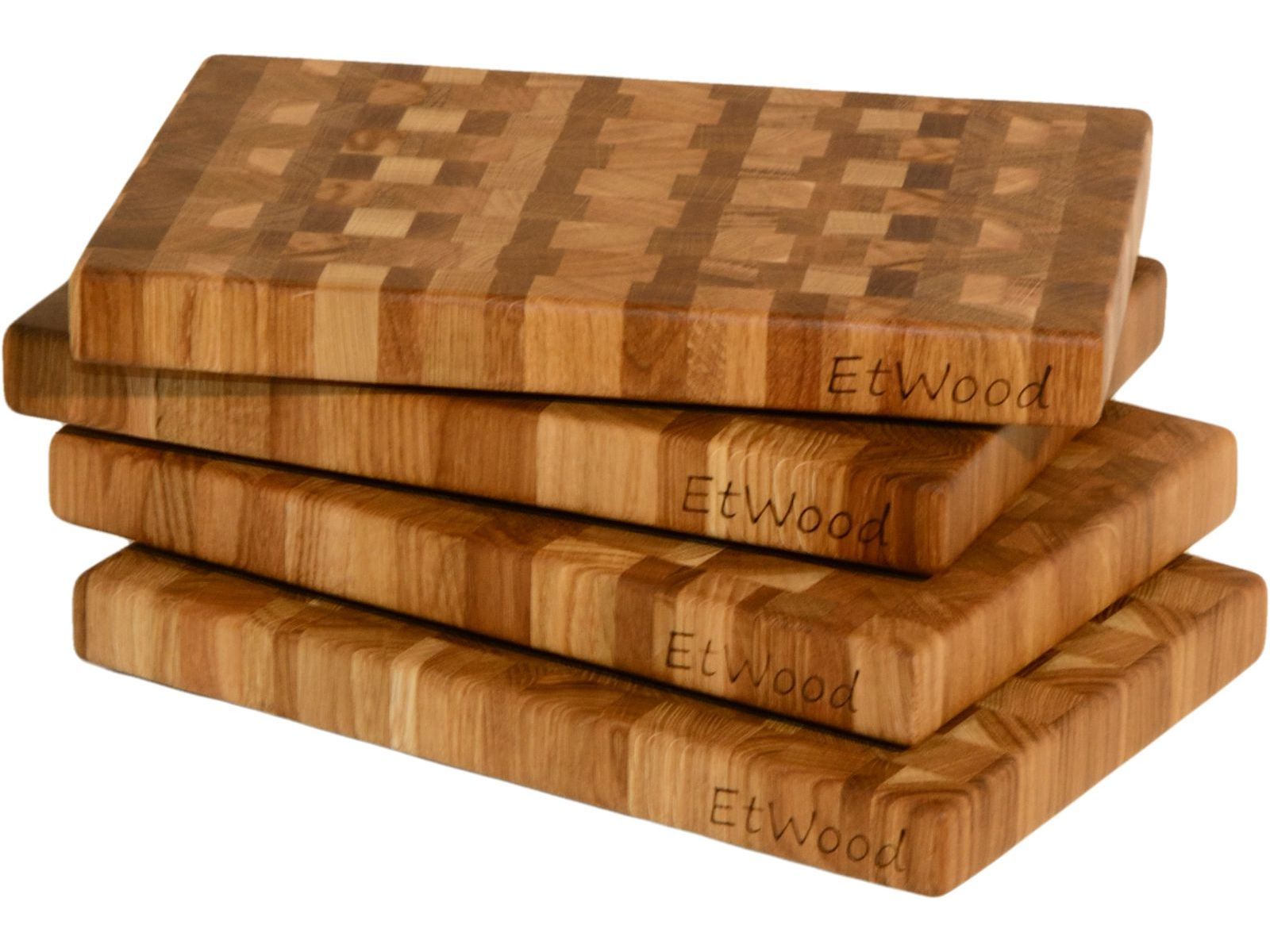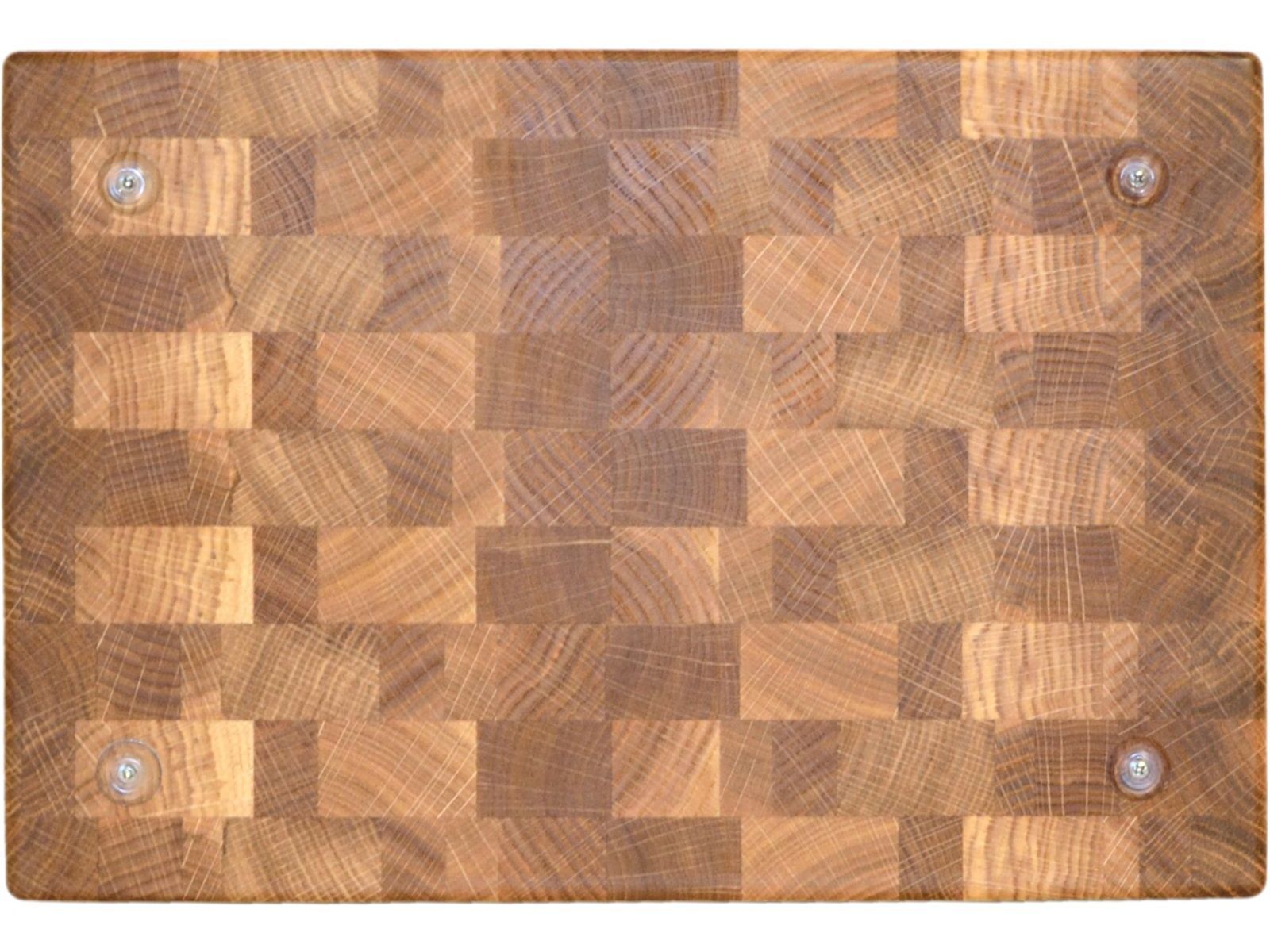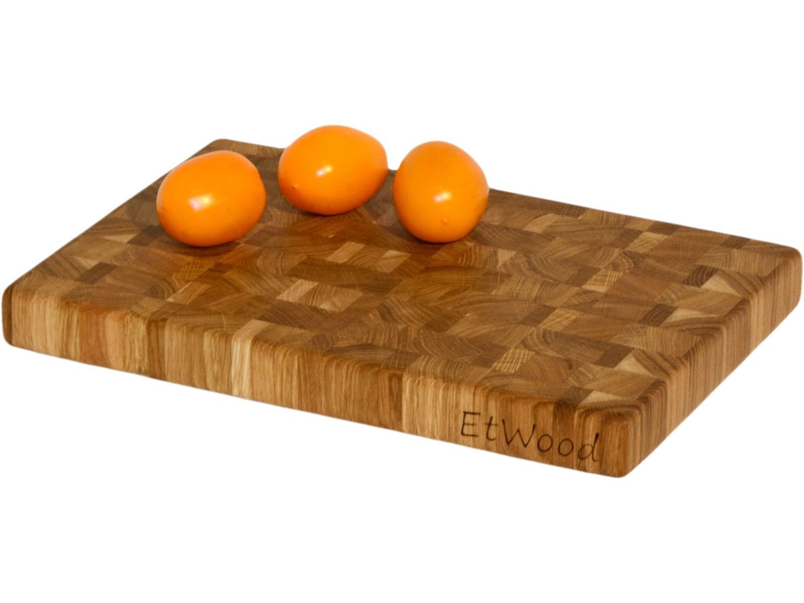 Дубовая торцевая разделочная доска — эталонное решение для вашей кухни. Высокая прочность и обилие дубильных веществ обеспечивает ей долгую службу. Предоставив шефскому ножу комфортное основание для работы. Торцевая ориентация волокон бережет заточку, а удобные эластичные ножки обеспечивают устойчивость при работе. Глубокая обработка минеральным маслом и пчелиным воском, усиливает антибактериальный эффект дубильных веществ, и защищает от загрязнений и влажности. А причудливые переплетения годовых колец и сердцевинных лучей, раскрытое ручной работой в мастерской EtWood, придает торцевым разделочным доскам из дуба неповторимый рисунок, не способный примелькается. На доске установлены силиконовые ножки. Торцевая разделочная доска без фрезерованных ручек. При изготовлении разделочных досок мы применяем экологичный и не токсичный клей Titebond III Ultimate, допускающий контакт с продуктами питания
