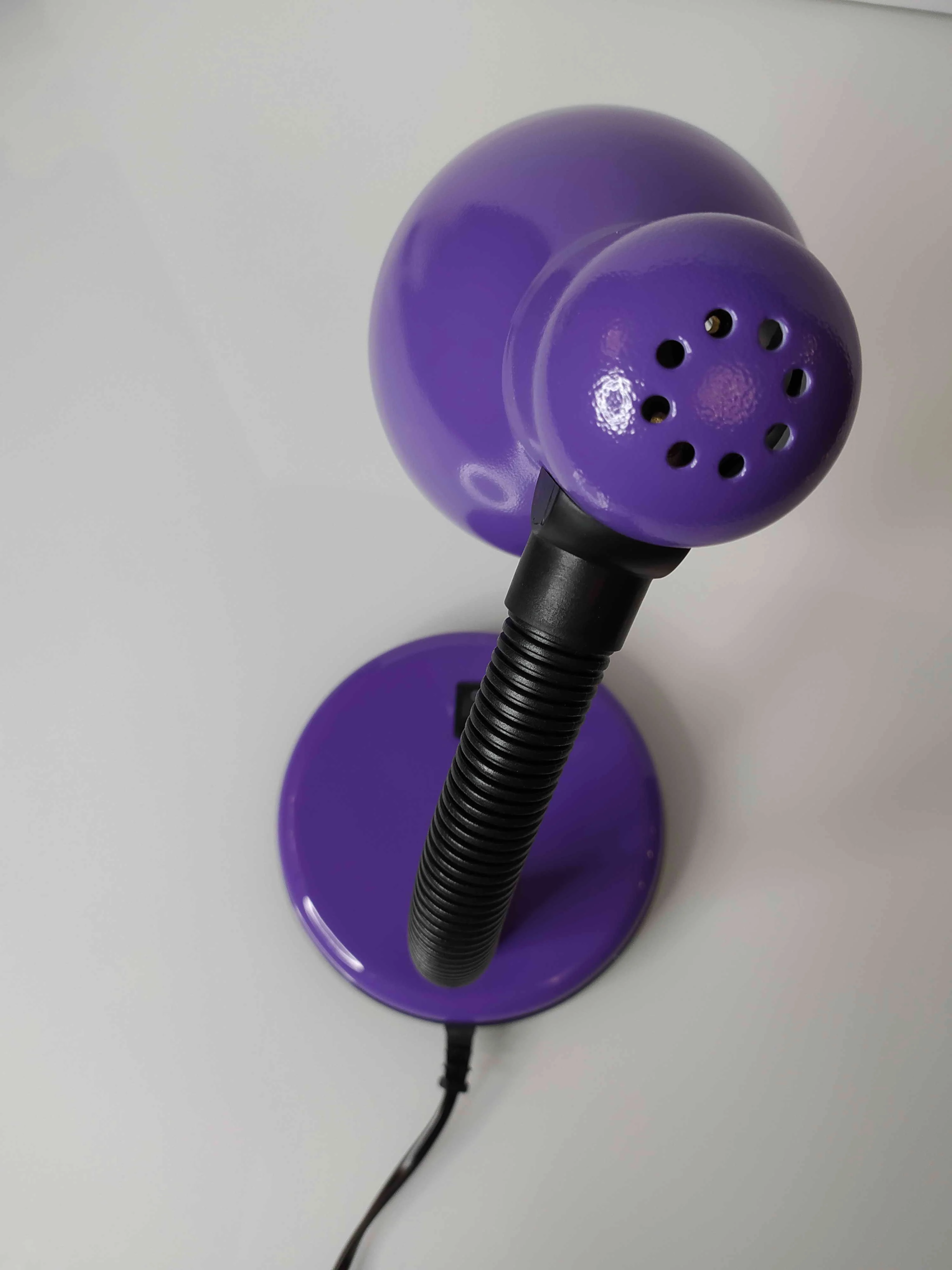 Светильник выполнен из металла и пластика, оснащен гибкой ножкой и кнопкой включения/выключения. Длина шнура питания составляет 1 метр.