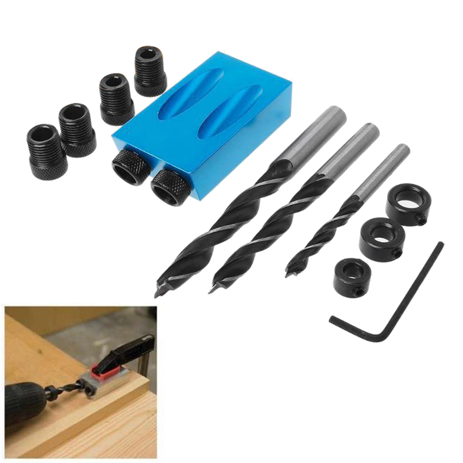 Легкость в установке, легко переключаться между мульти-Размеры 6/8/10 мм сверло, используемая для любого "под дерево", положение и угол.