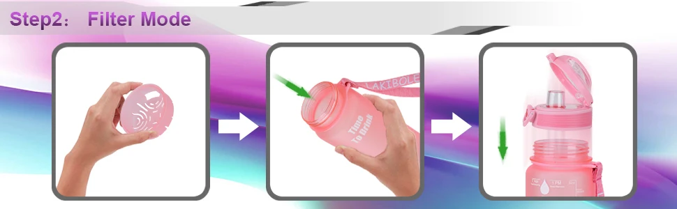 Комплектация: 1 съемная крышка бутылки, 1 Мотивирующий корпус бутылки с водой, 1 силиконовый мундштук, 2 соломинки, 1 большой фильтр для частиц.