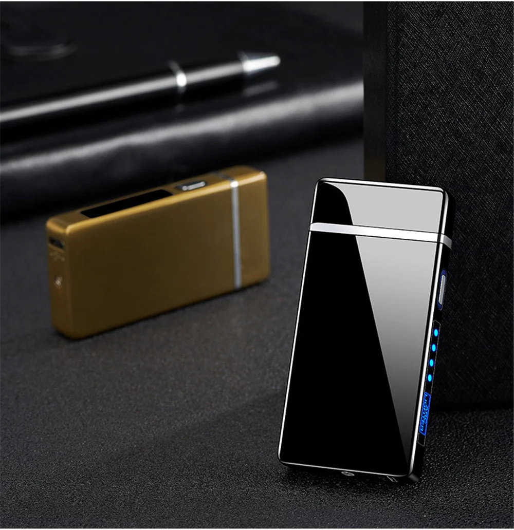 Двойная дуговая электрическая зажигалка с подключением к USB ветрозащитная металлическая зажигалка светодиодный экран зажигание плазменная зажигалка аксессуары для курения для мужчин
