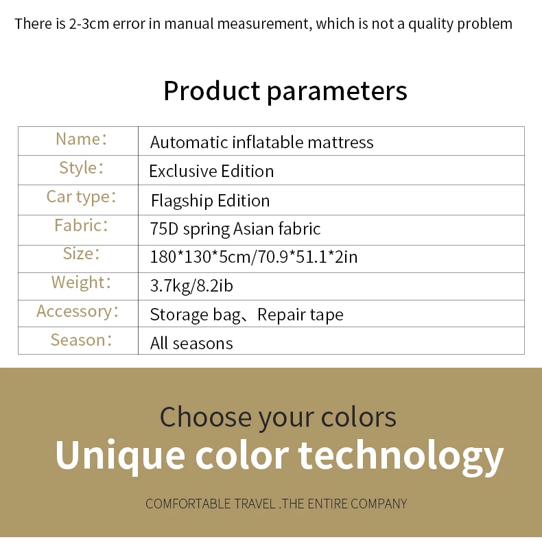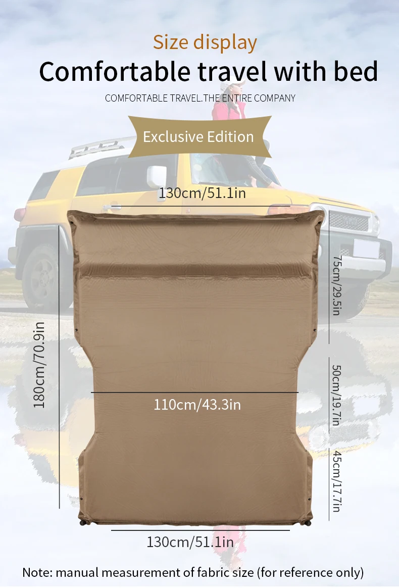 Пулевые точки: 1. Портативное хранение: Используйте ремень для хранения, после того, как воздушная подушка будет убрана, объем небольшой светильник, легко носить с собой. 2. Автоматическое надувание: уникальная Автоматическая надувная подушка обеспечивает вам хороший сон каждый раз, когда вы путешествуете. 3. Удобный материал: с использованием ткани PONGEE, экологически чистый материал, гладкая поверхность, износостойкий и легко стираемый, водонепроницаемый и дышащий. 4. Складное Использование: все в разложенном виде (для 2-3 человек) накладные половины (для одного человека) две формы, несколько вариантов на выбор. 5. Комфортное использование: сердцевина изготовлена из высококачественного эластичного хлопка, выбрана губка высокой плотности и удобная поддержка. Особенности: 1. Портативное хранение: Используйте ремень для хранения, после того, как воздушная подушка будет убрана, объем небольшой светильник, легко носить с собой. 2. Автоматическое надувание: уникальная Автоматическая надувная подушка обеспечивает вам хороший сон каждый раз, когда вы путешествуете. 3. Удобный материал: с использованием ткани chunya, экологически чистый материал, гладкая поверхность, износостойкий и легко стираемый, водонепроницаемый и дышащий. 4. Складное Использование: все в разложенном виде (для 2-3 человек) наложено наполовину (для одного человека) две формы, несколько вариантов на выбор. 5. Комфортное использование: сердцевина изготовлена из высококачественного эластичного хлопка, выбрана губка высокой плотности и удобная поддержка Список: Автомобильная автоматическая надувная кровать * 1