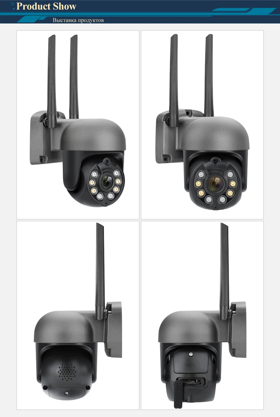 * PTZ: панорамирование 270 градусов/наклон 90 градусов.