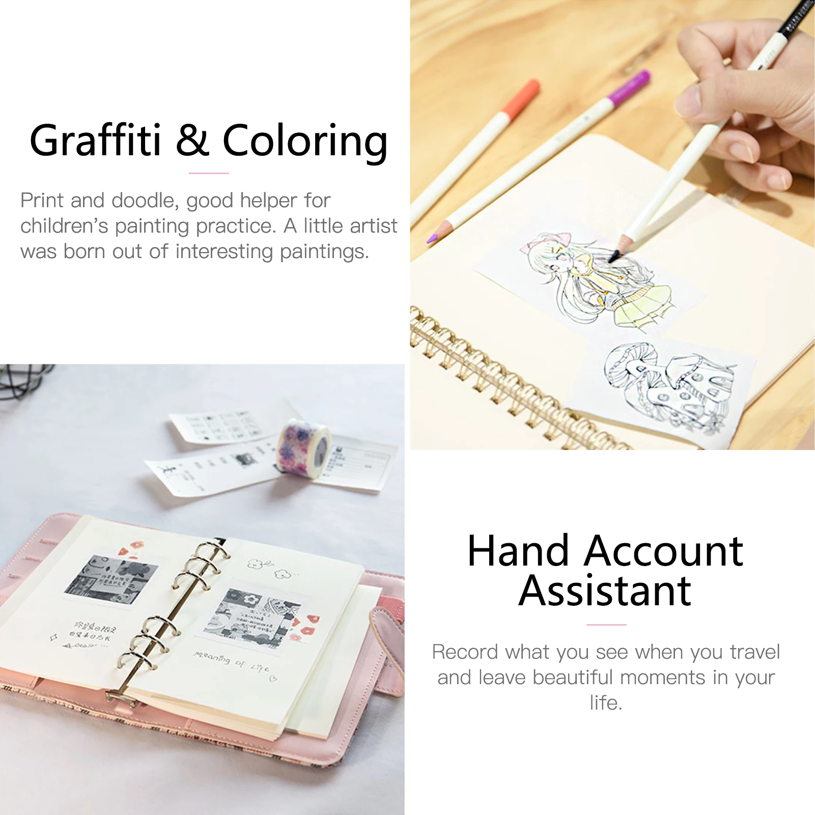 Карманный принтер:Маленький и легкий, легко носить с собой. Ширина бумаги 57 мм, разрешение 300 точек/дюйм, гладкая и чистая печать, удовлетворяет ваши различные потребности в печати.