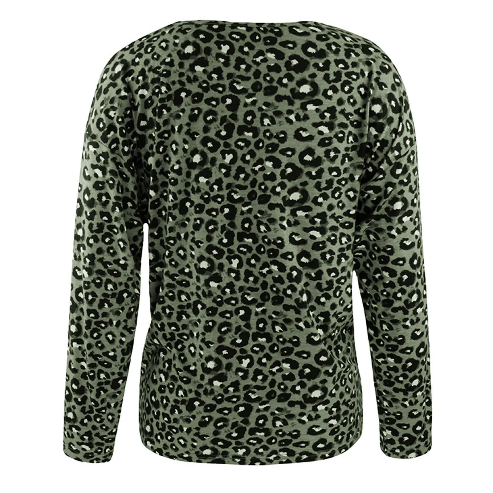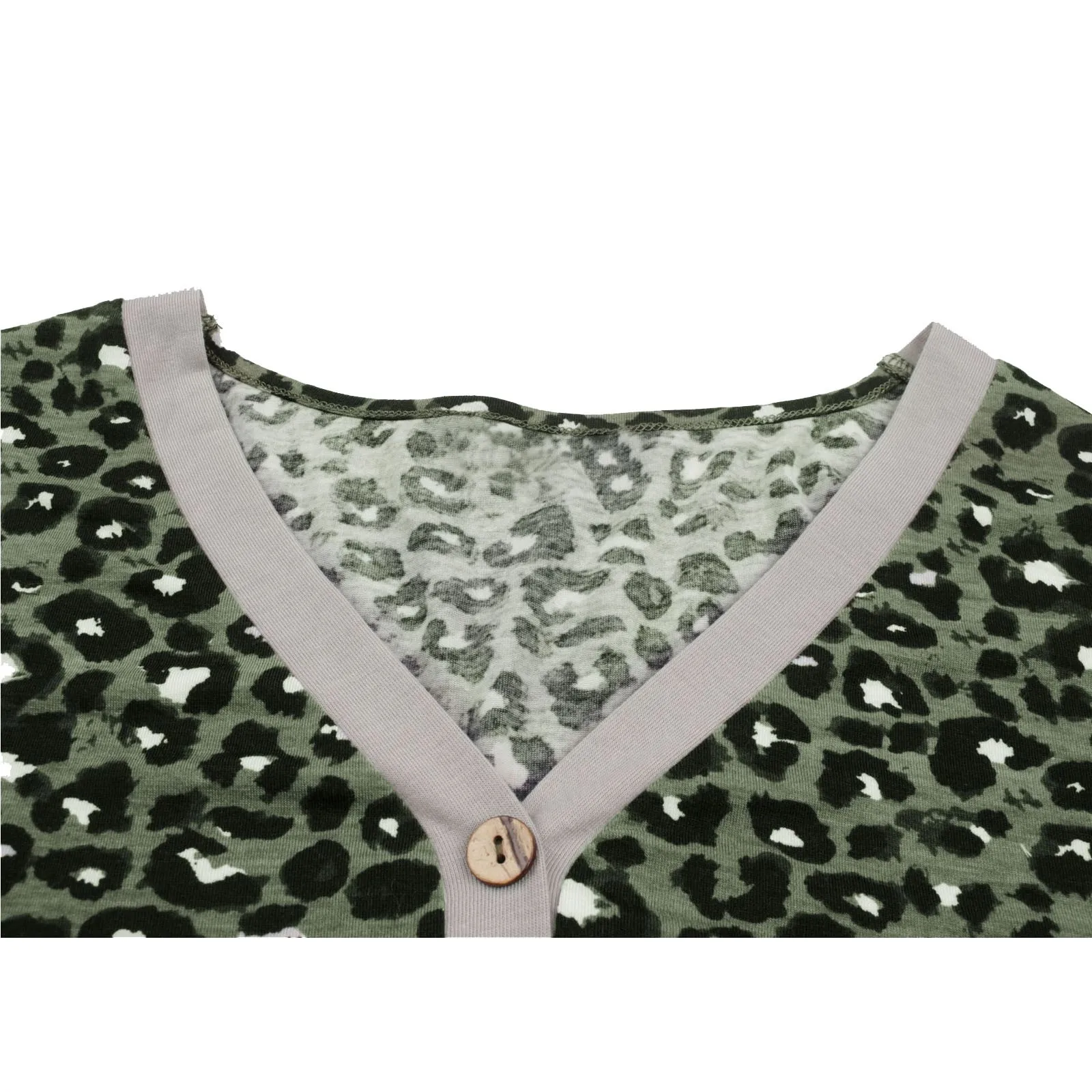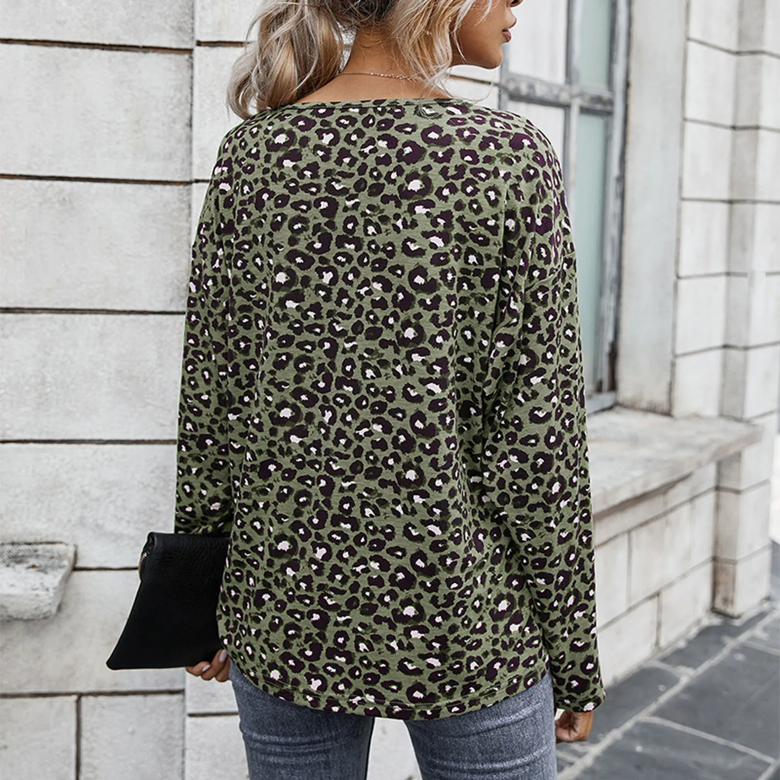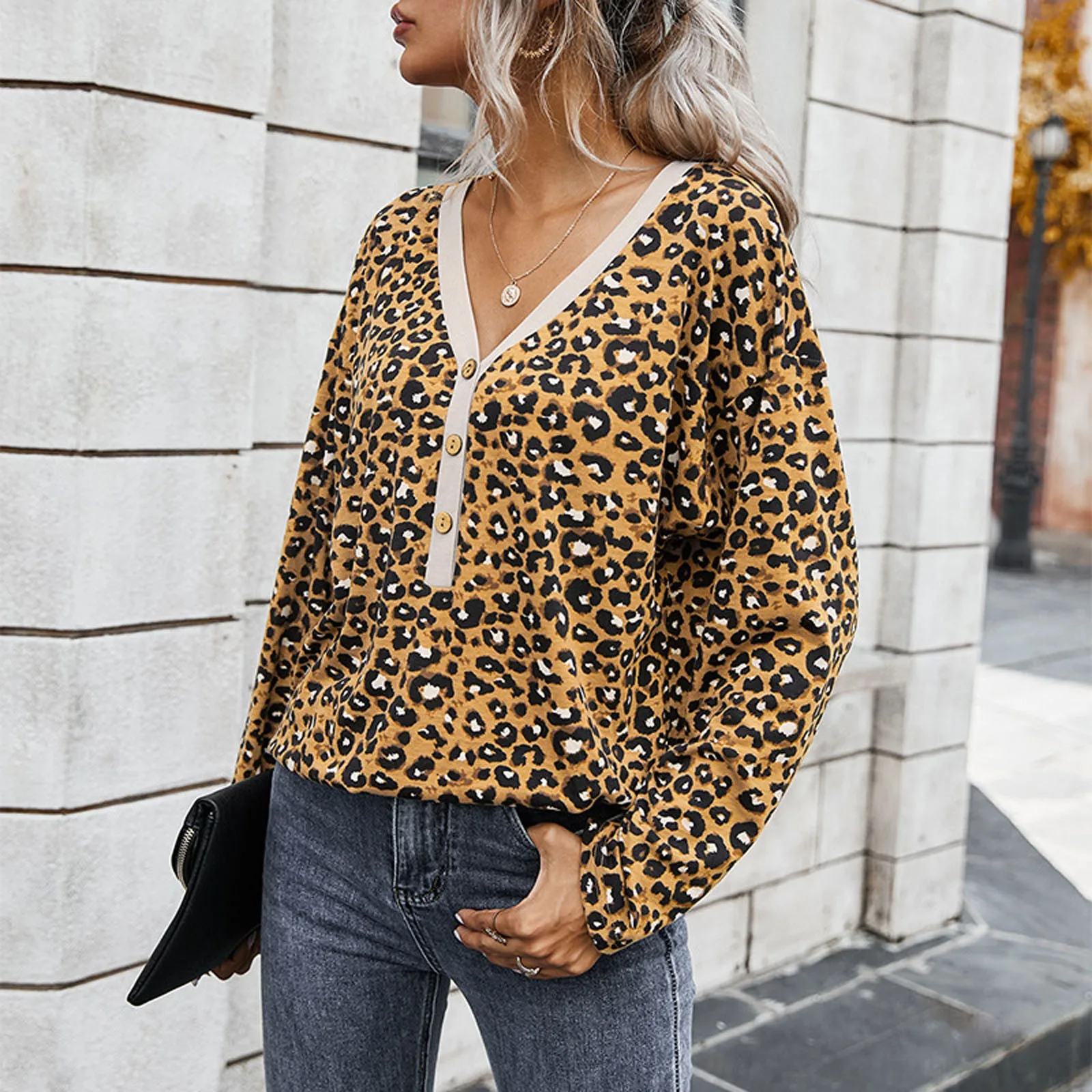 Женская модная трикотажная блузка с длинным рукавом и v-образным вырезом, топы с леопардовым принтом, свободные рубашки