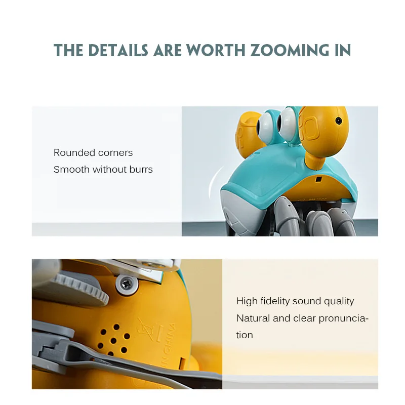 Индукционная Игрушка-краб изготовлена из безопасных для детей материалов и оснащена ABS. Дизайн дуги гладкий и края без заусенцев защищают вашего ребенка от царапин.