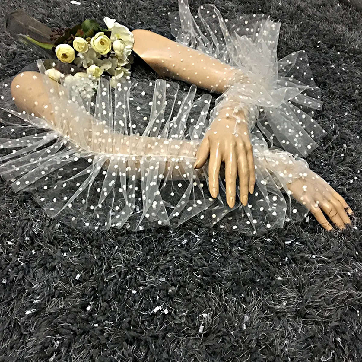 1 пара, женские элегантные сетчатые длинные перчатки без пальцев в горошек с оборками, реквизит для фотосъемки, аксессуары для свадебного костюма