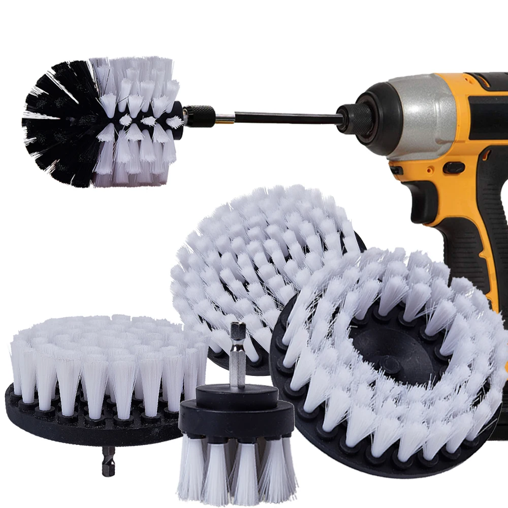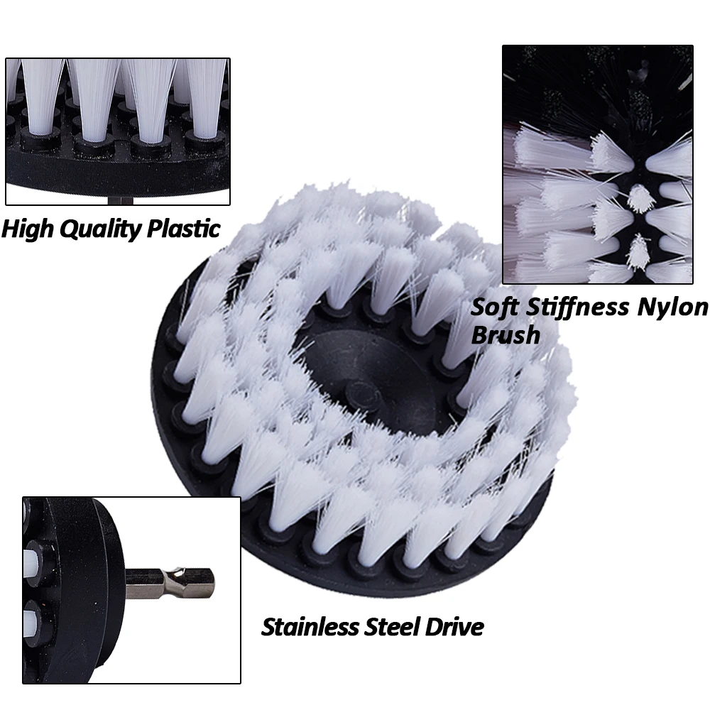 • Белая щетка для дрели имеет мягкую нейлоновую щетину и не царапает поверхности предмета.