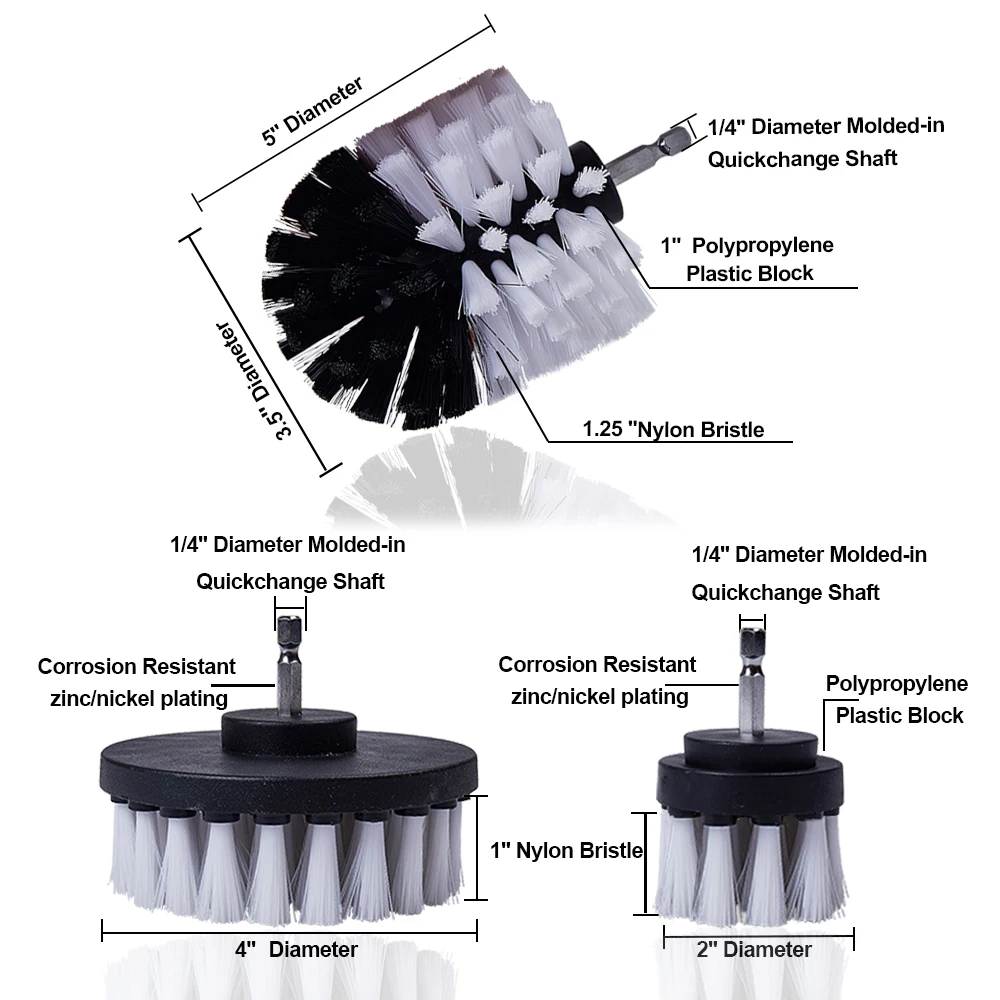 • Щетка для дрели может использоваться для очистки автомобильных шин, стекла, кожи, Ковров, душа, обивки и т. д.
