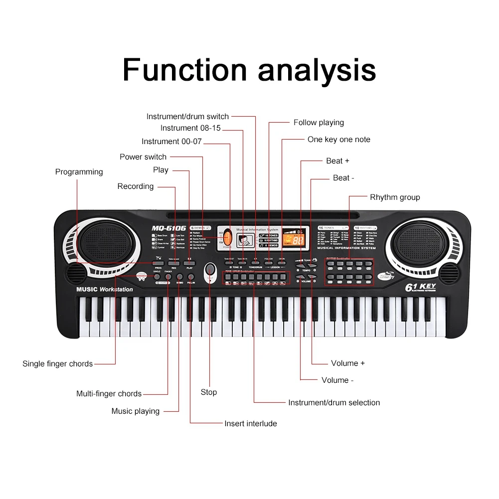 6. Четкий и удобный ключ для легкой игры, деликатный 61 черный и белый ключи.