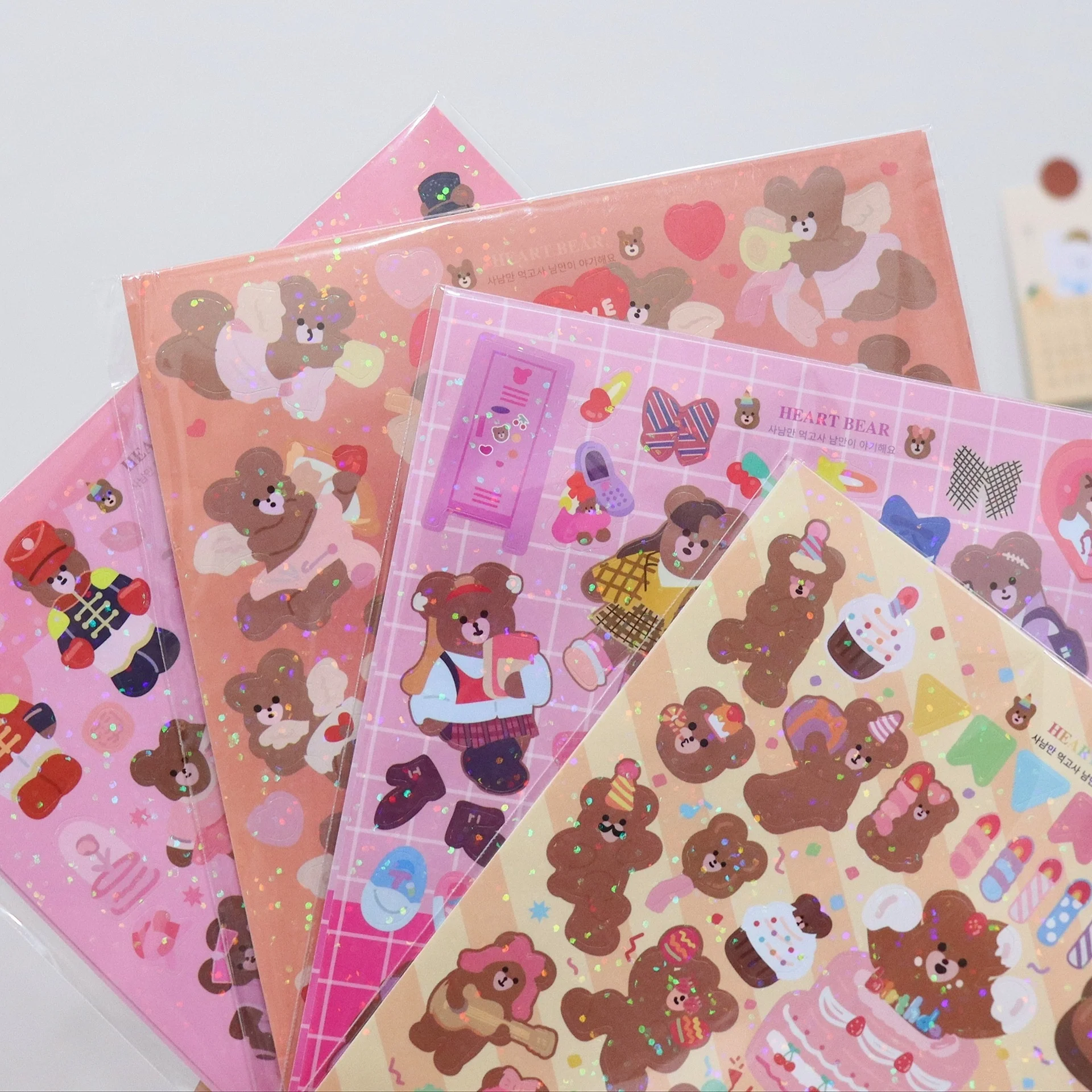 Красивая блестящая лазерная наклейка с изображением медведя из мультфильма