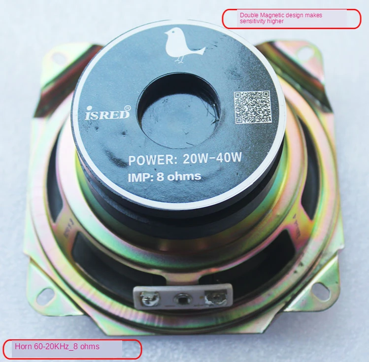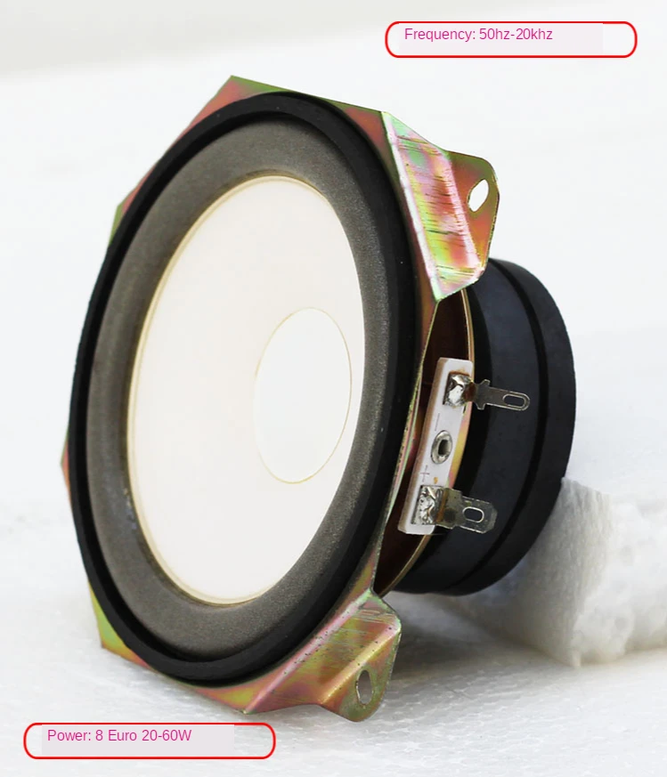 Динамик Размер: 251x150x170 мм принятия единица измерения-сантиметр 4 дюймовая двойная Магнитная полночастотный Динамик импеданс: 8 Ом Мощность: 20-60 Вт Диапазон частот: 60 Гц-20K Особенности: он принимает шестигранный винт, встроенный звукопоглощающий хлопок и достаточный материал. Диапазон применения звука: трубный усилитель (5 Вт и более), 2,0/2,1 цифровой усилитель мощности, домашний кинотеатр, CD автомобиль и другие усилители мощности, которые могут быть подключены к пассивному аудио. Отправляем два 1,5 м Акустические кабели.