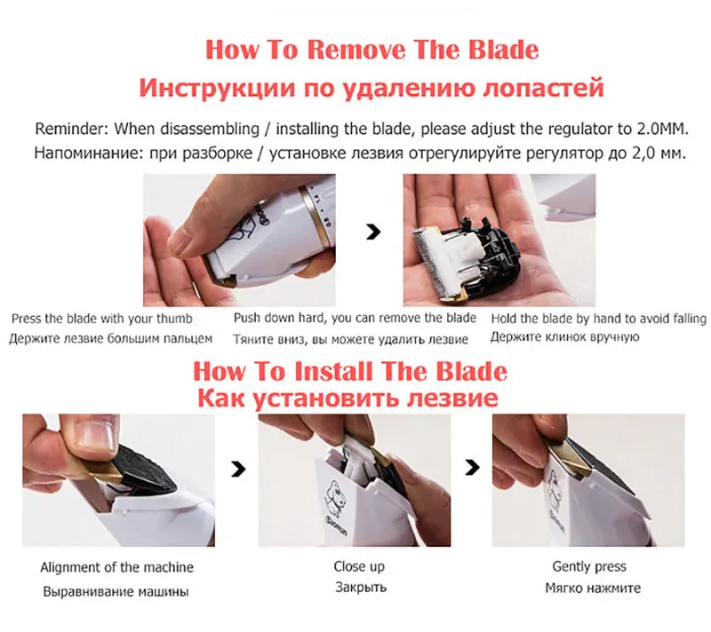 Съемные лезвия машинки для стрижки собак легко заменяют и чистят