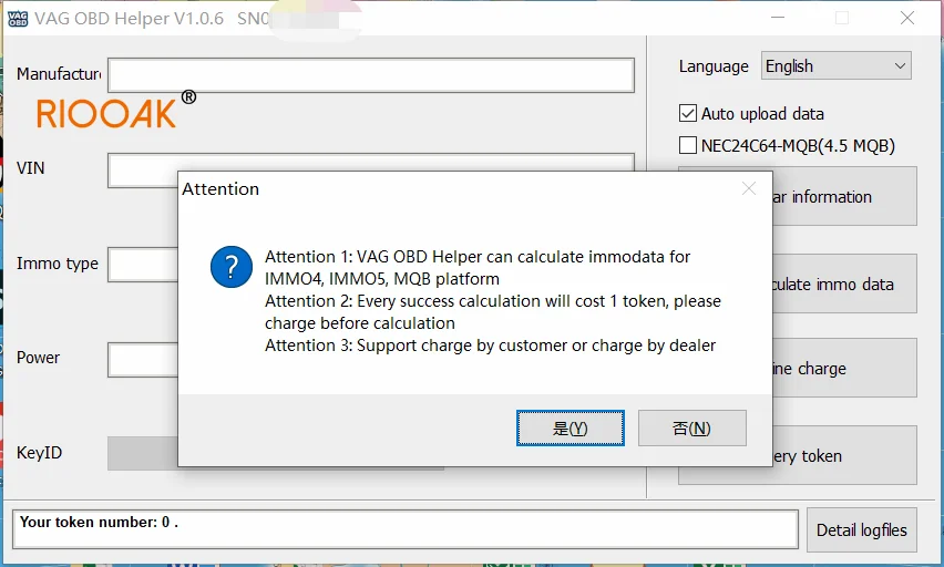 Примечание:Перед использованием VAG OBD helper, пожалуйста, убедитесь, что информация о транспортном средстве не повреждена и статус транспортного средства является легальным, в противном случае данные immo не могут быть рассчитаны.